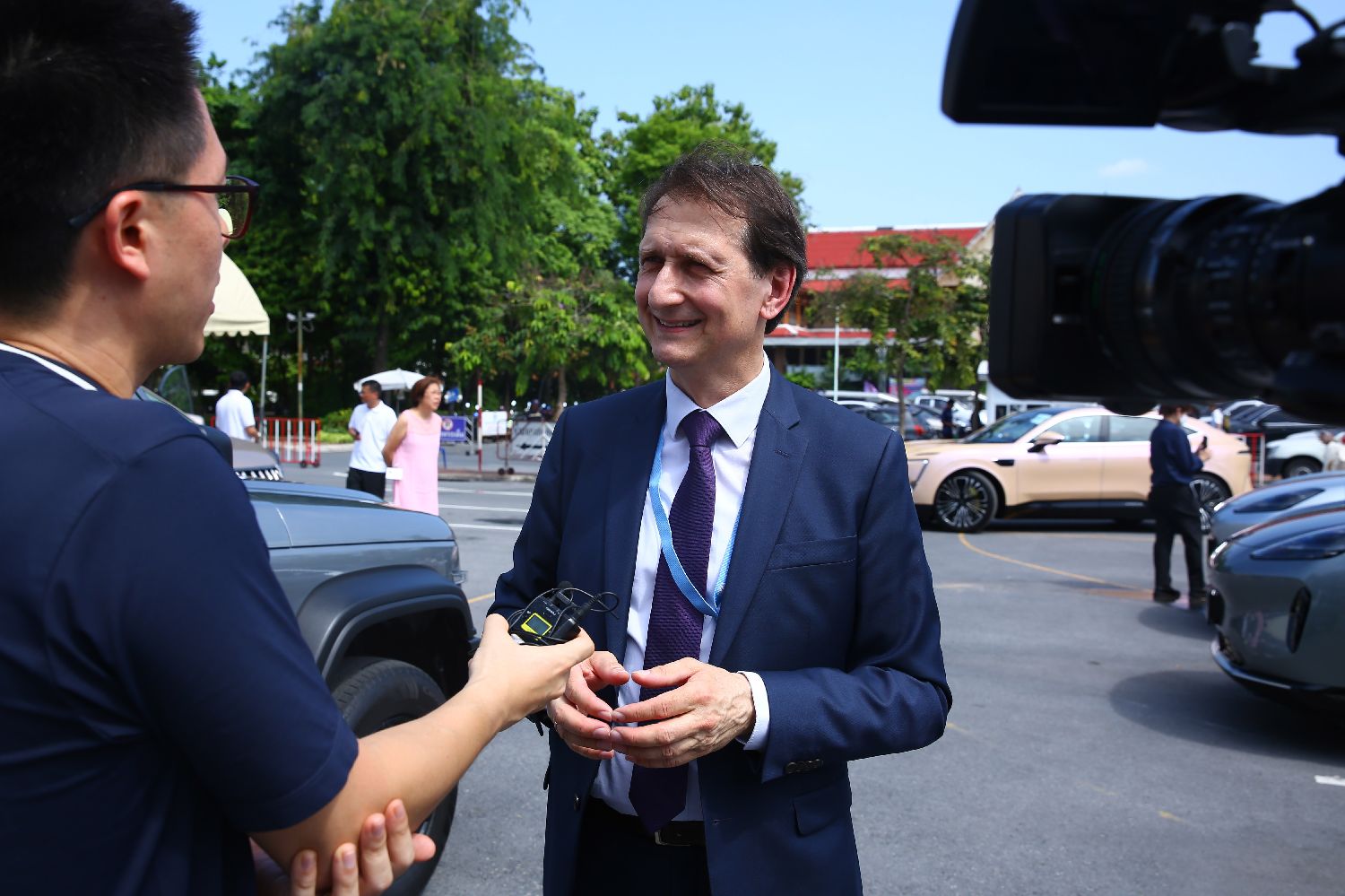6月4日,在泰国曼谷举办的道路安全周活动上,联合国世界车辆法规协调论坛自动驾驶与网联汽车工作组主席里夏德·达姆接受采访。