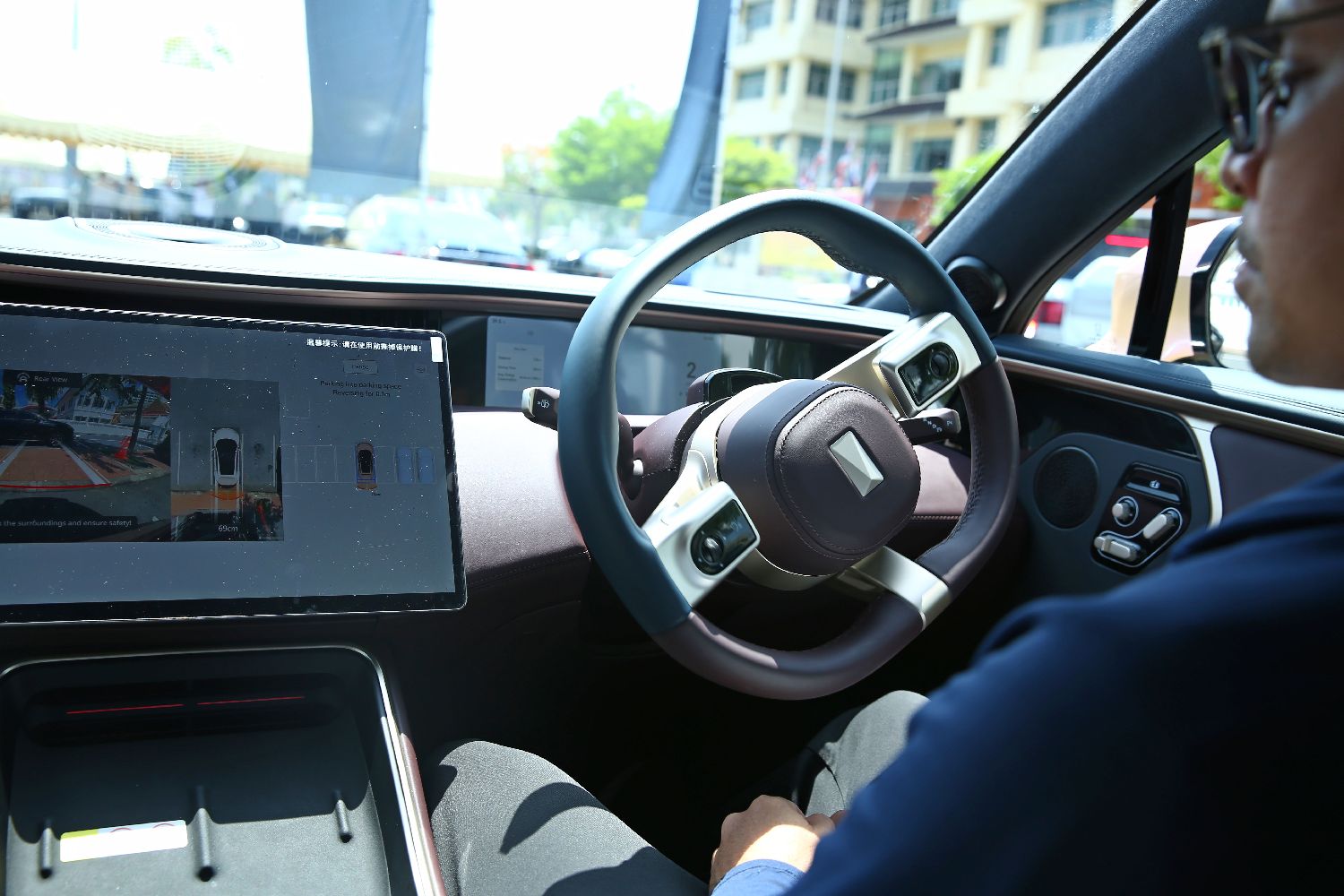 6月4日,在泰国曼谷举办的道路安全周活动上,试车员展示阿维塔汽车的自动泊车功能。
