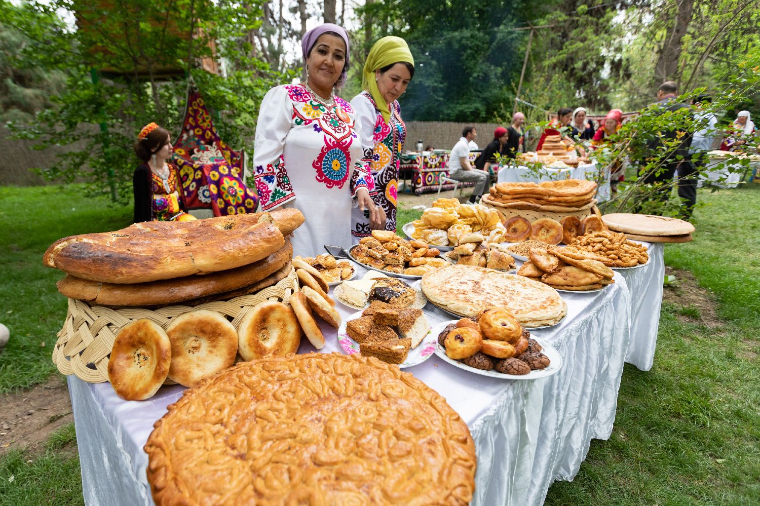 2019年4月13日,在塔吉克斯坦首都杜尚别,人们展示传统美食。