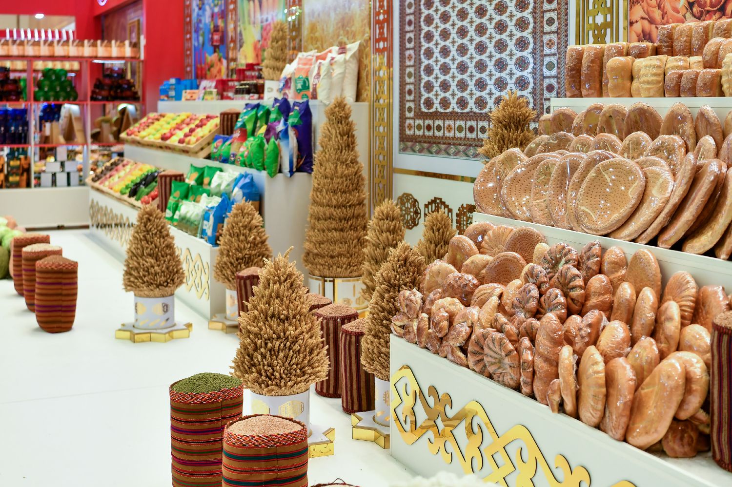 2023年11月28日在土库曼斯坦首都阿什哈巴德农业博览会上展出的馕。