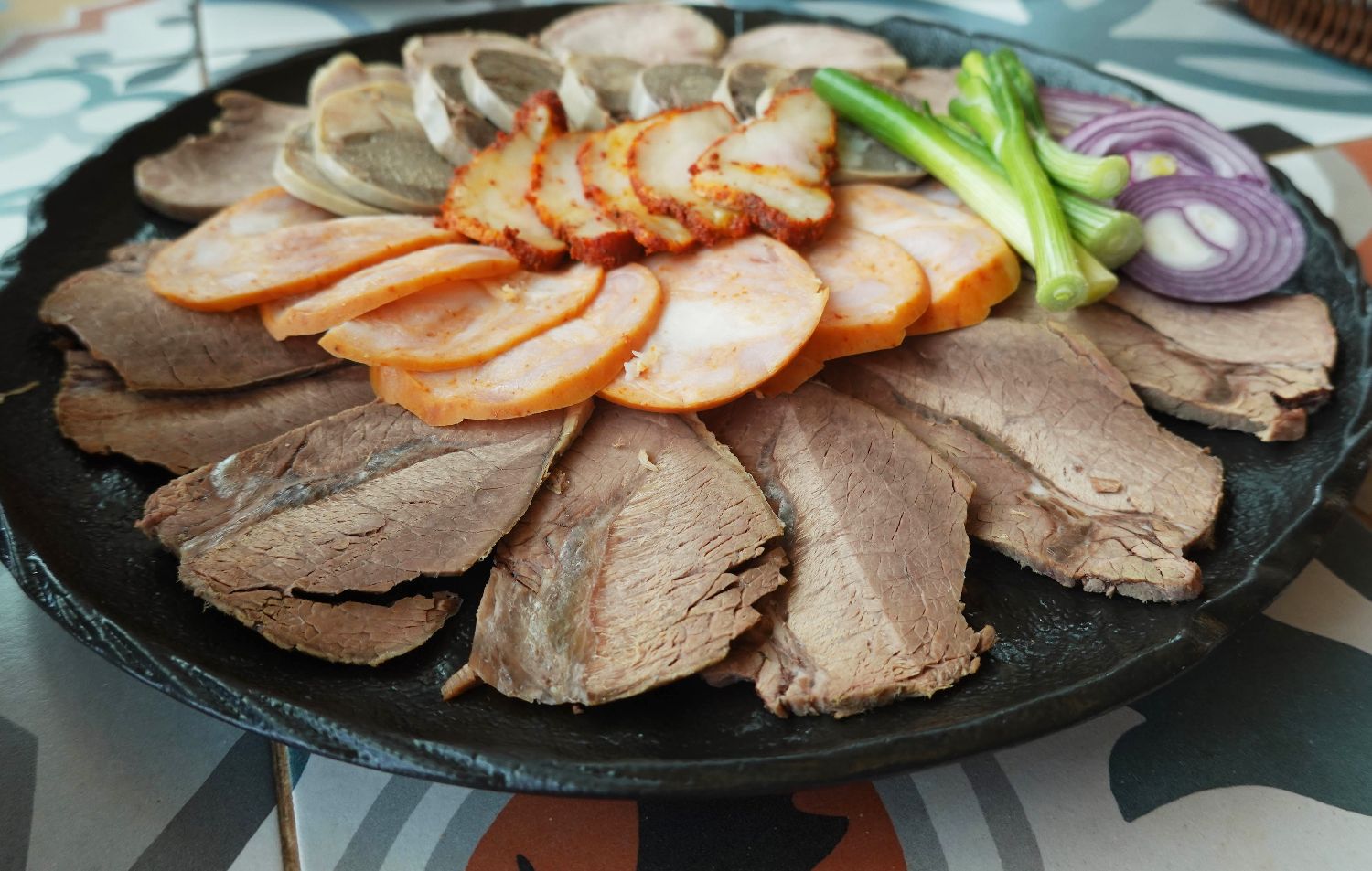 2025年6月14日在哈萨克斯坦首都阿斯塔纳拍摄的肉类拼盘。