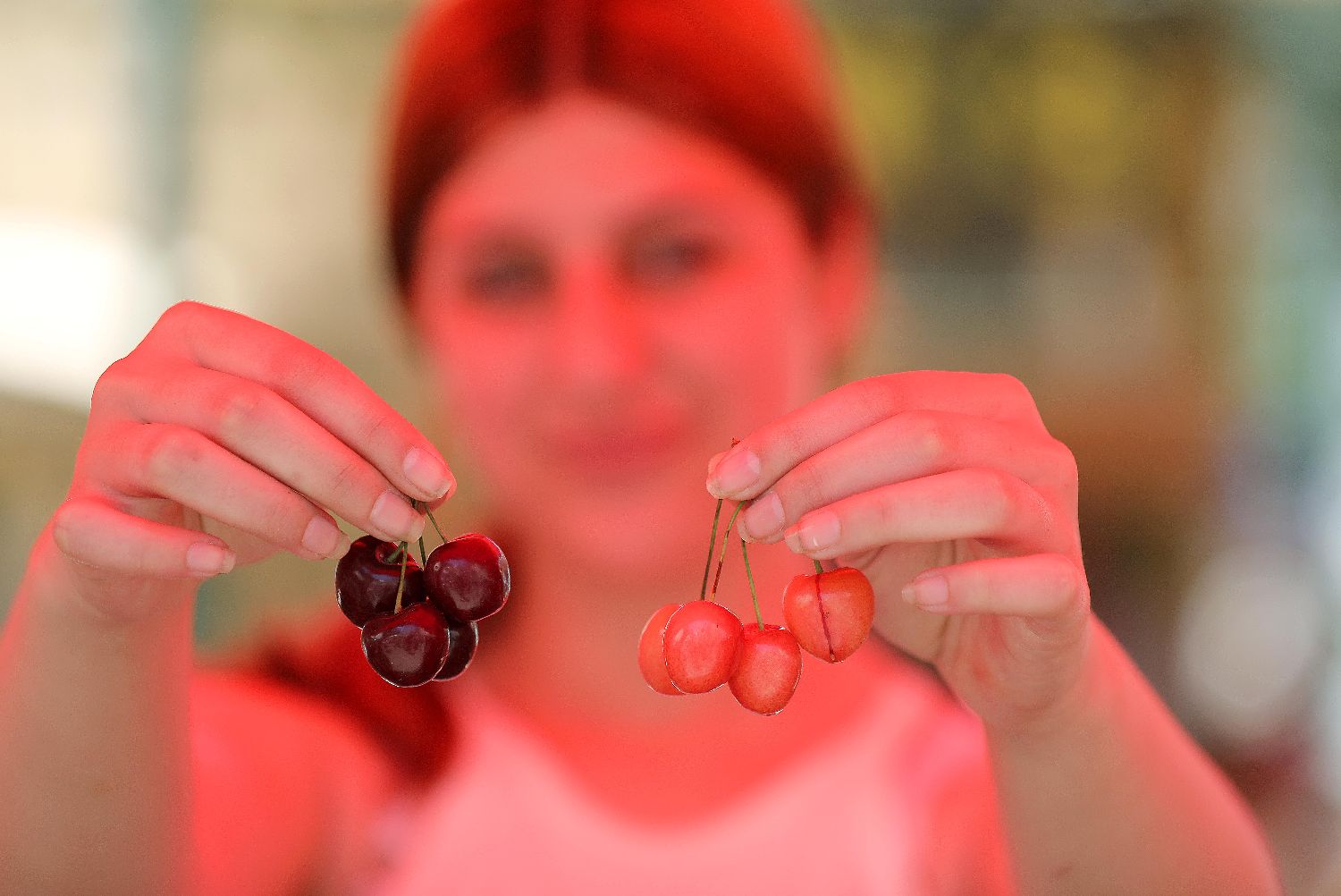 一名女子在黎巴嫩哈马纳参加樱桃节活动。