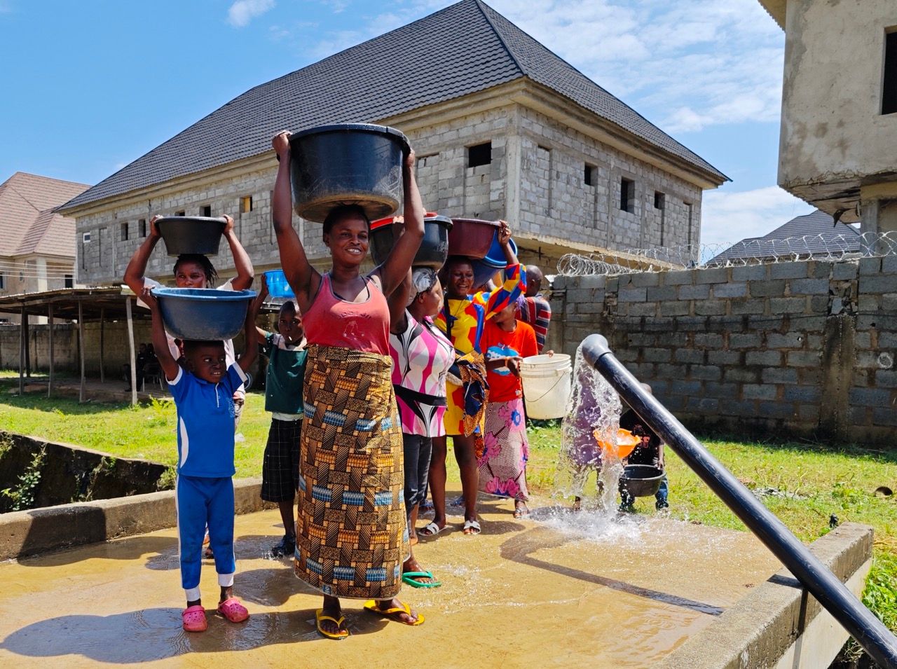 尼日利亚总统提努布16日在首都阿布贾出席仪式时表示,感谢中国企业和中国朋友帮助更多尼日利亚家庭获得安全充足的水源。资料图为2024年10月9日,尼日利亚阿布贾居民在阿布贾大供水项目试取水时前去接水。(图片来源:本文图片均自新华社发/中地海外尼日利亚有限公司供图)