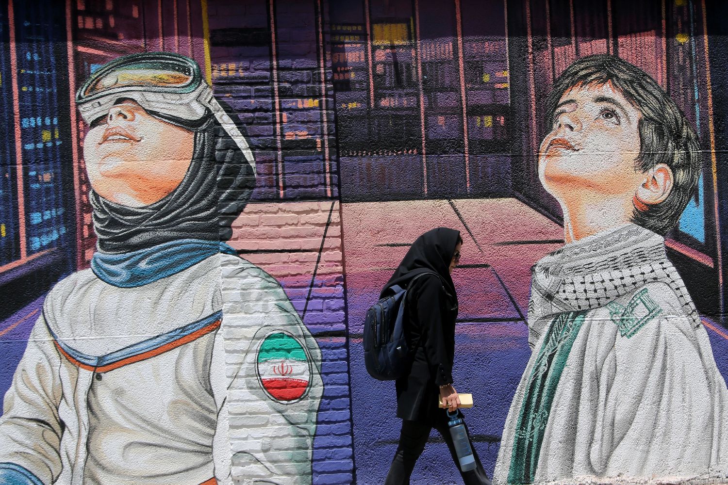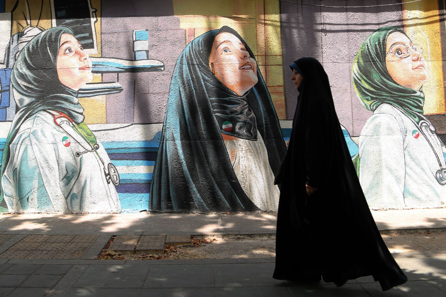 6月24日,在伊以停火协议生效后,一名女子走在伊朗首都德黑兰街头。