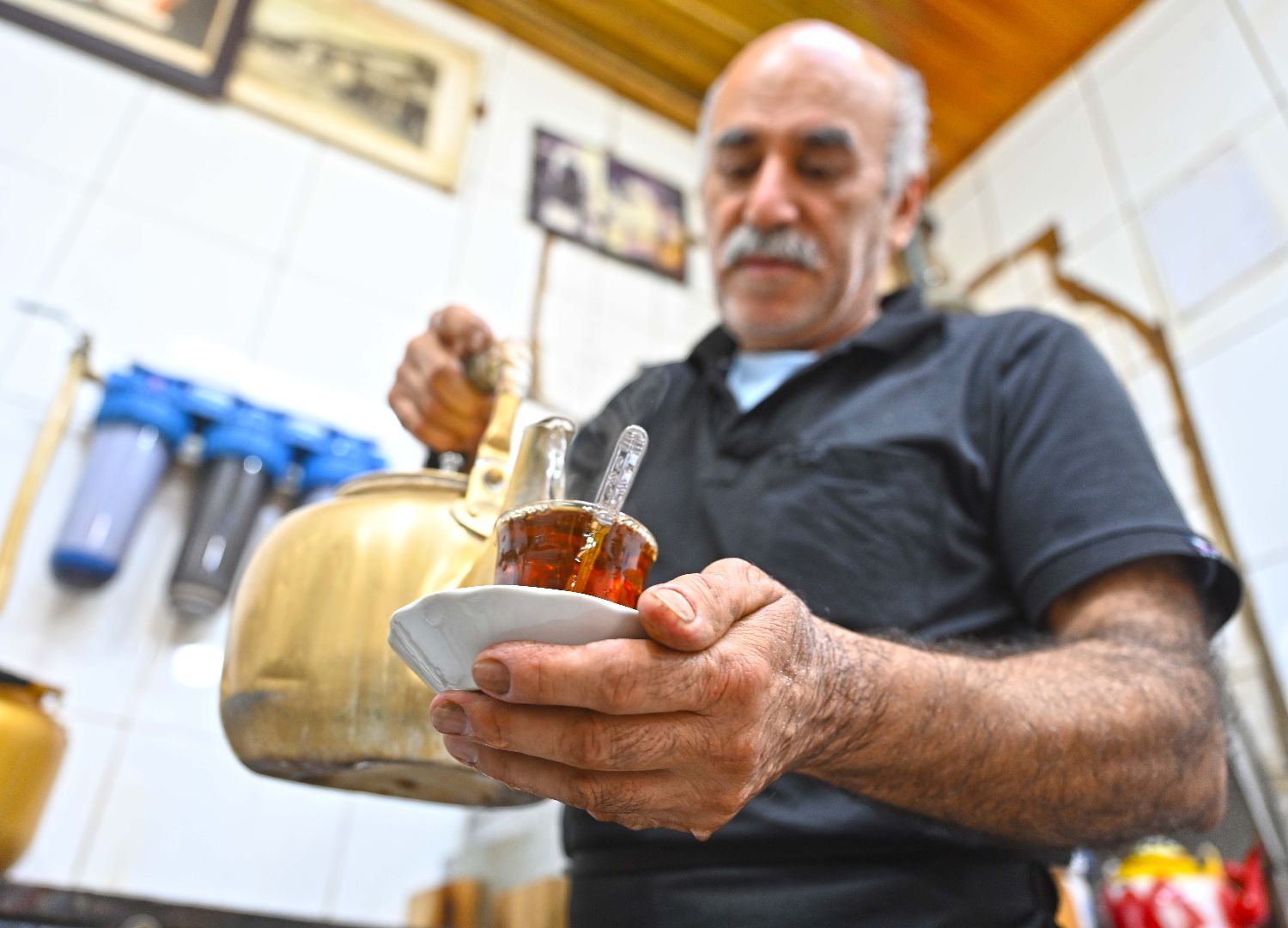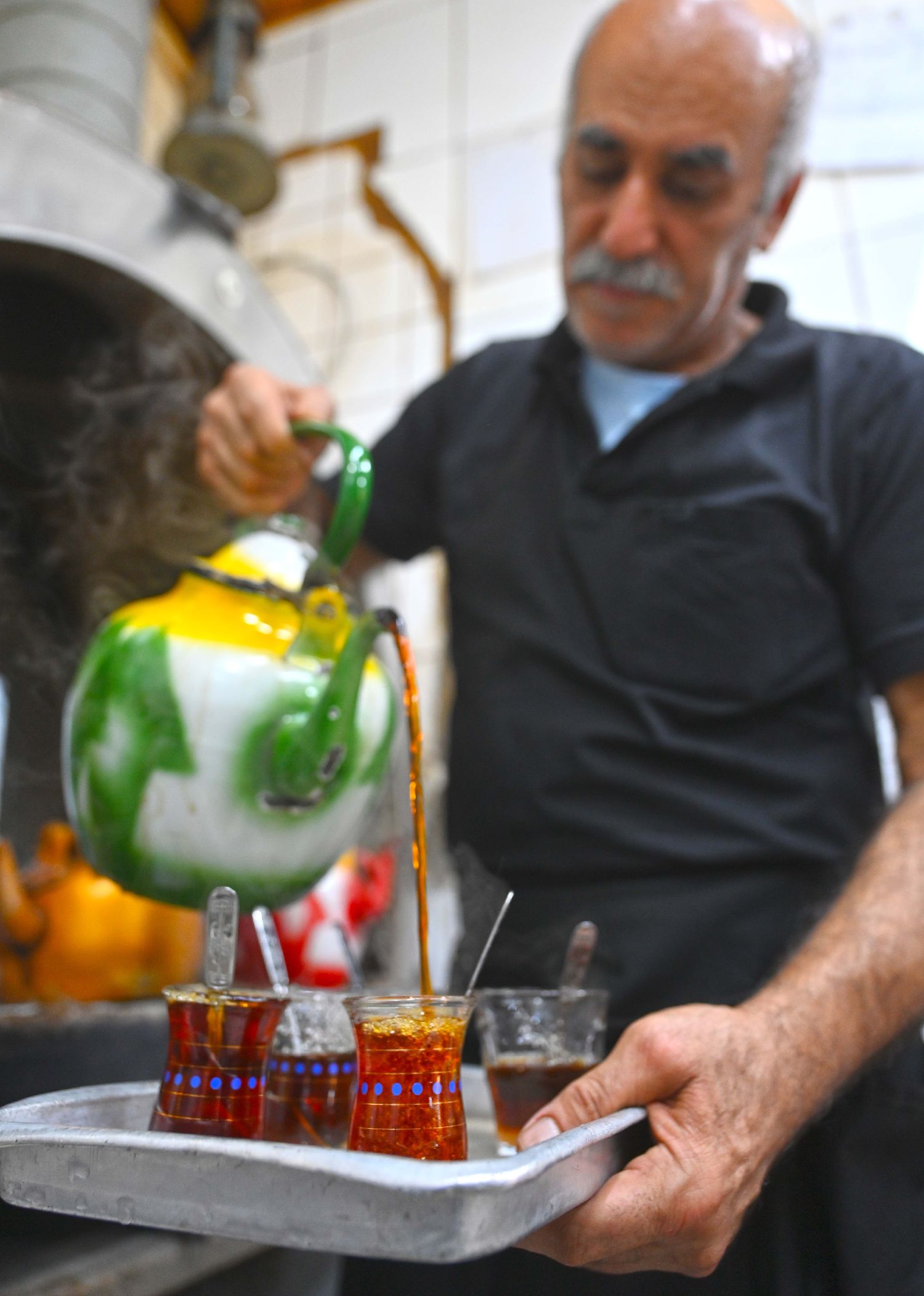 7月7日,在科威特首都科威特城,工作人员在达拉瓦茶馆为顾客准备茶。