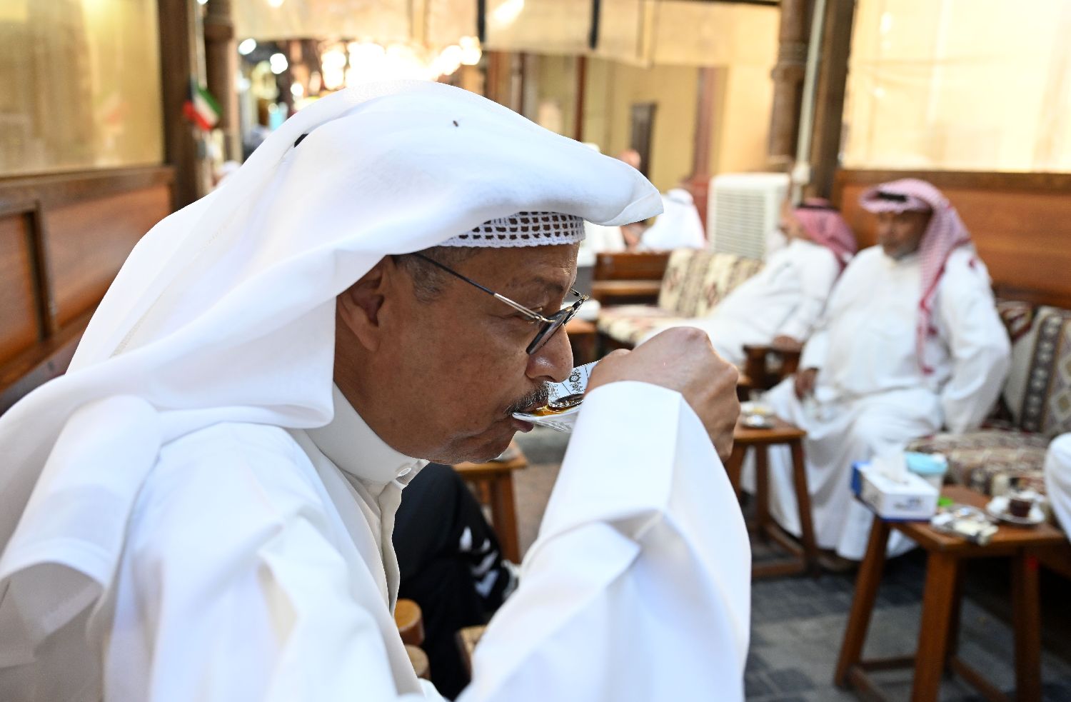 7月7日,在科威特首都科威特城,人们在达拉瓦茶馆喝茶。