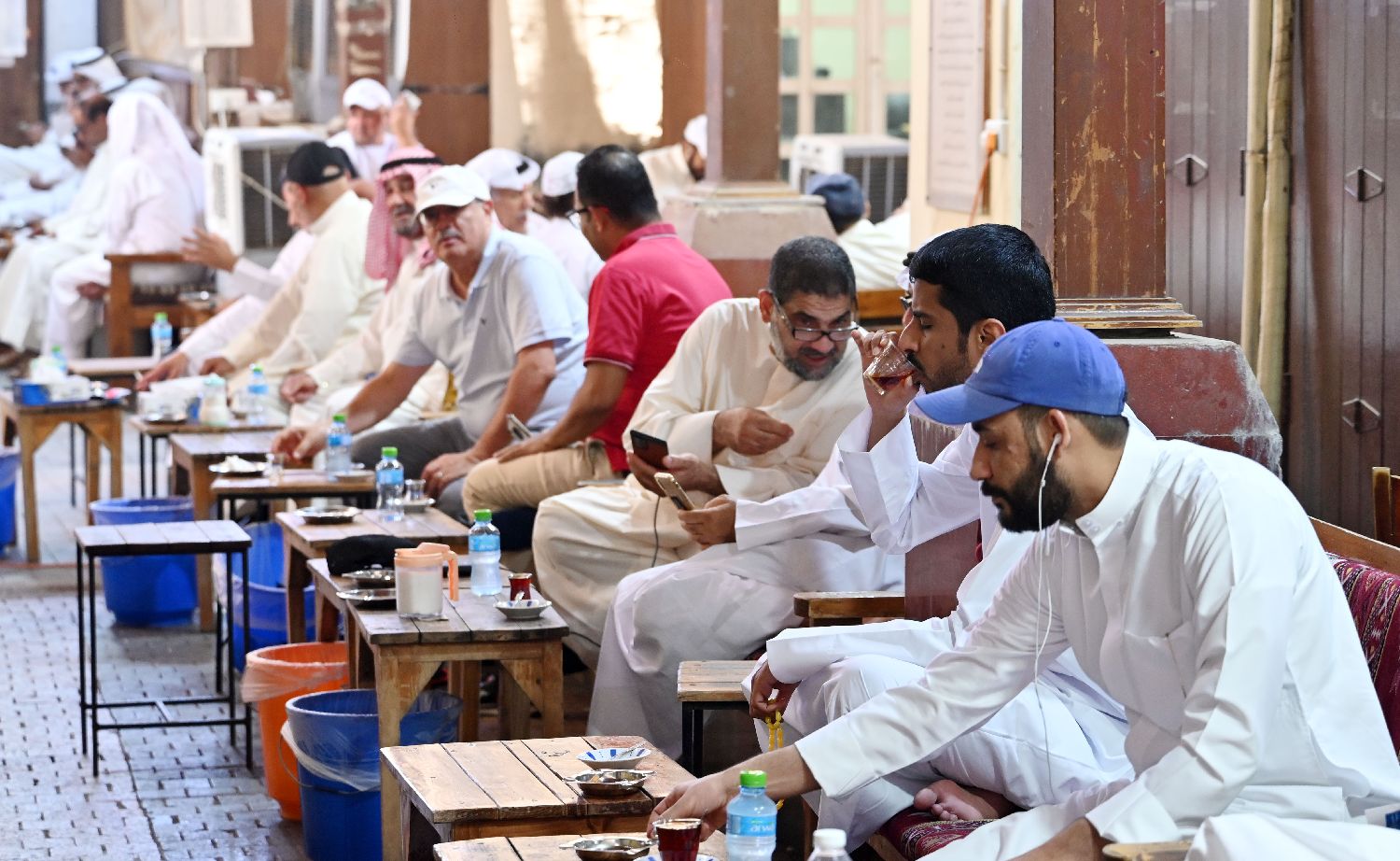 7月7日,在科威特首都科威特城,人们在达拉瓦茶馆喝茶。(图片来源:本文图片均据新华社)