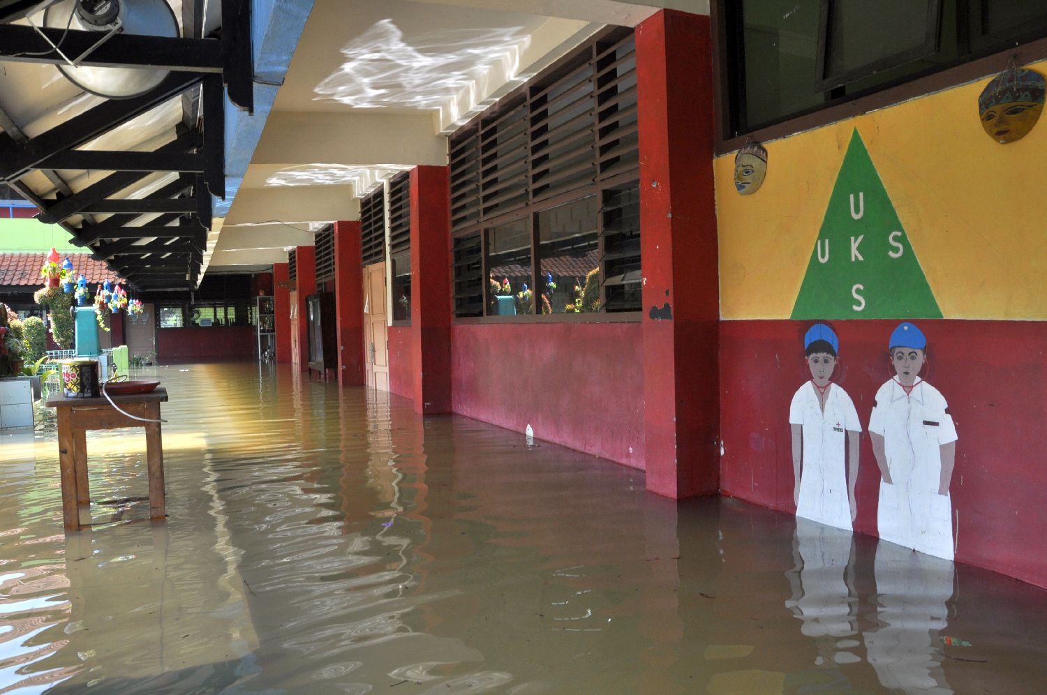 这是7月8日在印度尼西亚雅加达拍摄的一所被洪水浸泡的学校。(图片来源:本文图片均据新华社)
