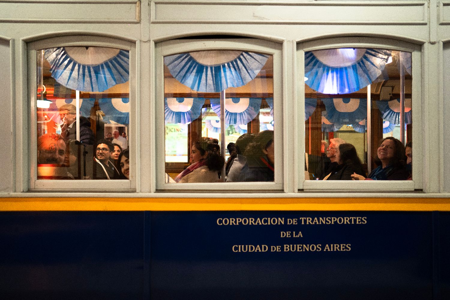 当地时间7月9日凌晨,人们在阿根廷布宜诺斯艾利斯地铁A线内搭乘老式列车。(图片来源:本文图片均来自新华社)