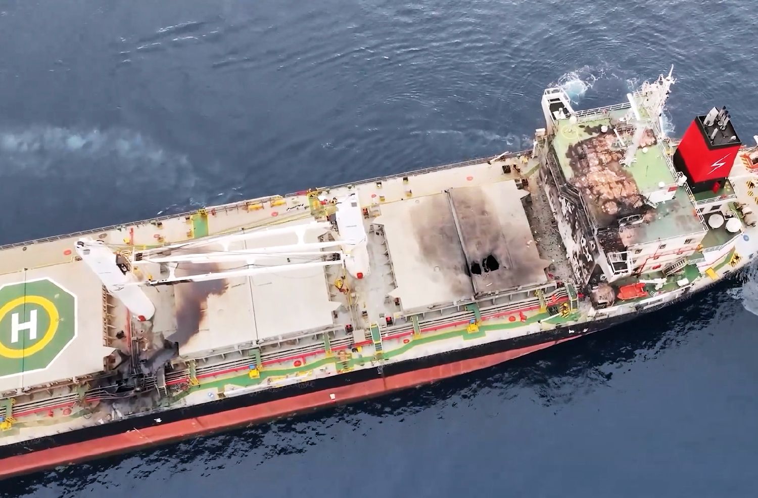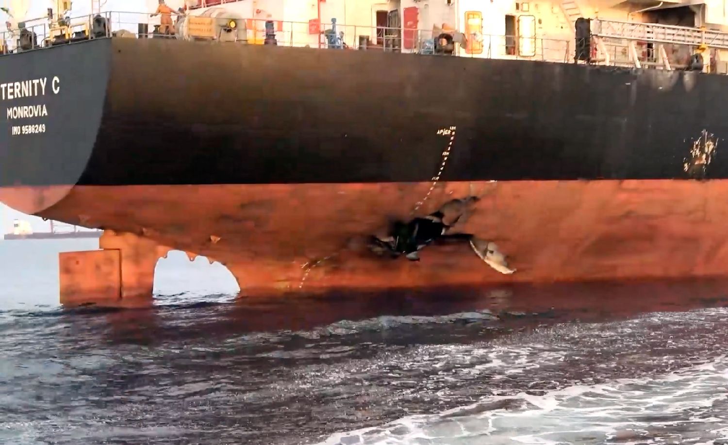 也门胡塞武装公布的影像显示,7月8日,在红海航行的希腊货轮“永恒C”号遭袭后船体受损。