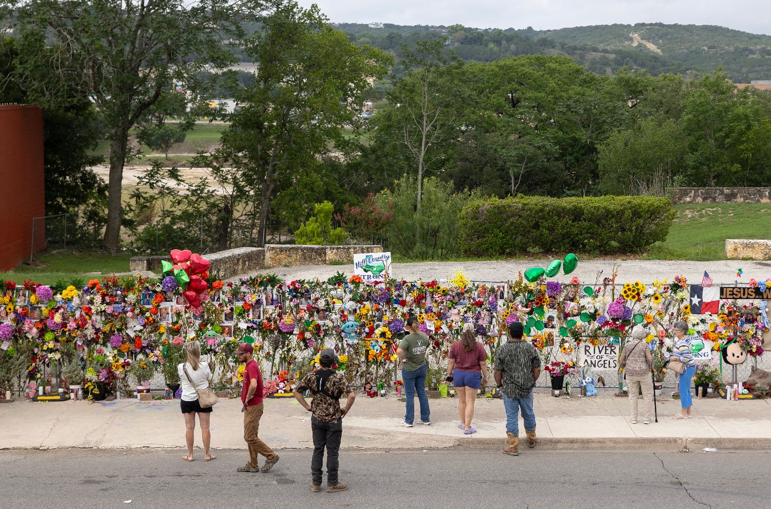 7月12日,民众在美国得克萨斯州克尔维尔一处临时纪念场所悼念洪灾遇难者。