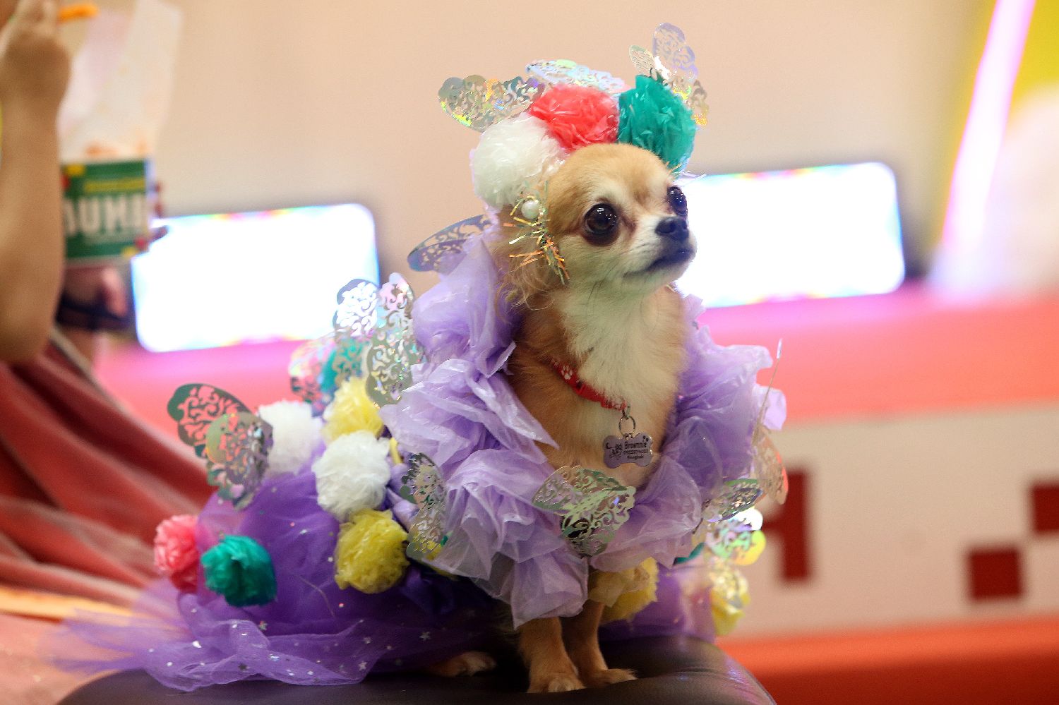 7月20日,一只宠物狗在泰国曼谷参加“宠物时装秀”。