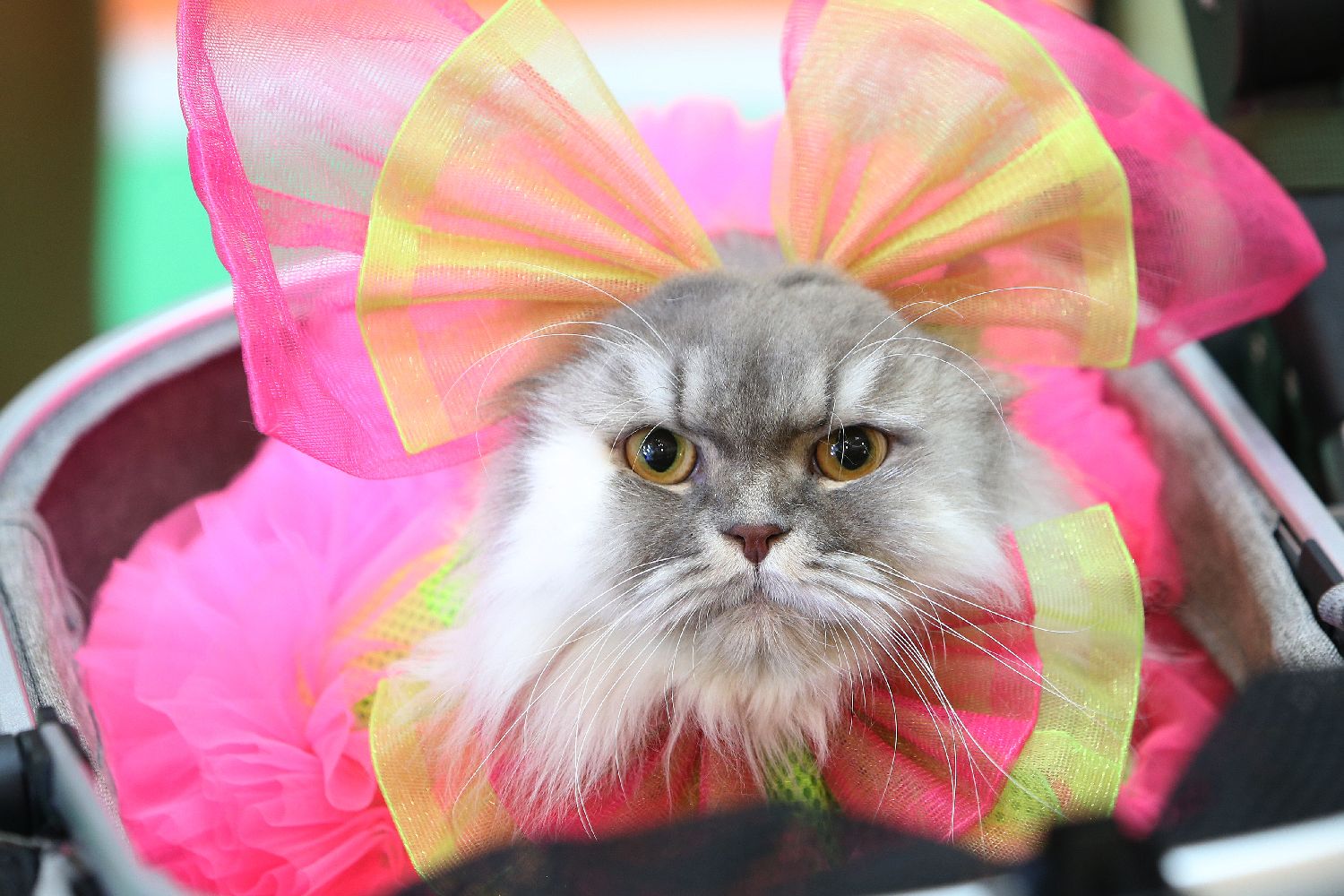 7月20日,一只宠物猫在泰国曼谷参加“宠物时装秀”。