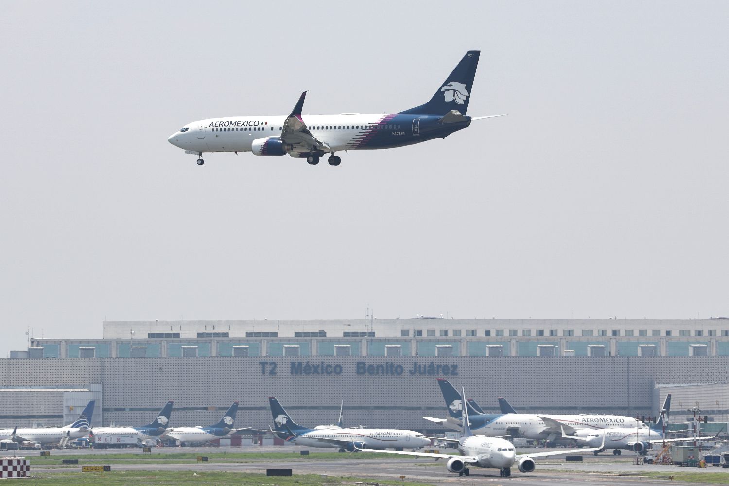 7月22日在墨西哥首都墨西哥城贝尼托·华雷斯国际机场拍摄的飞机。