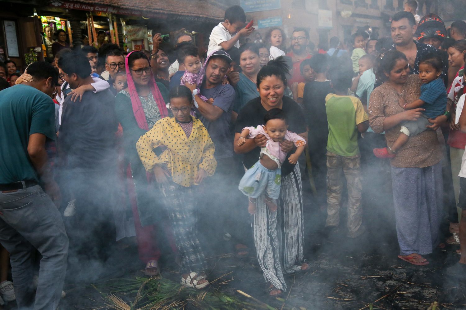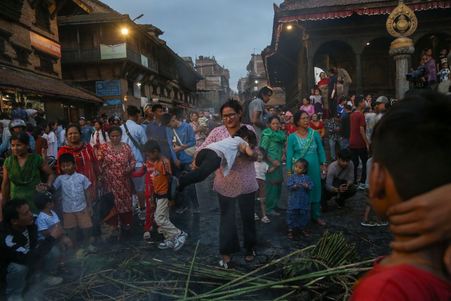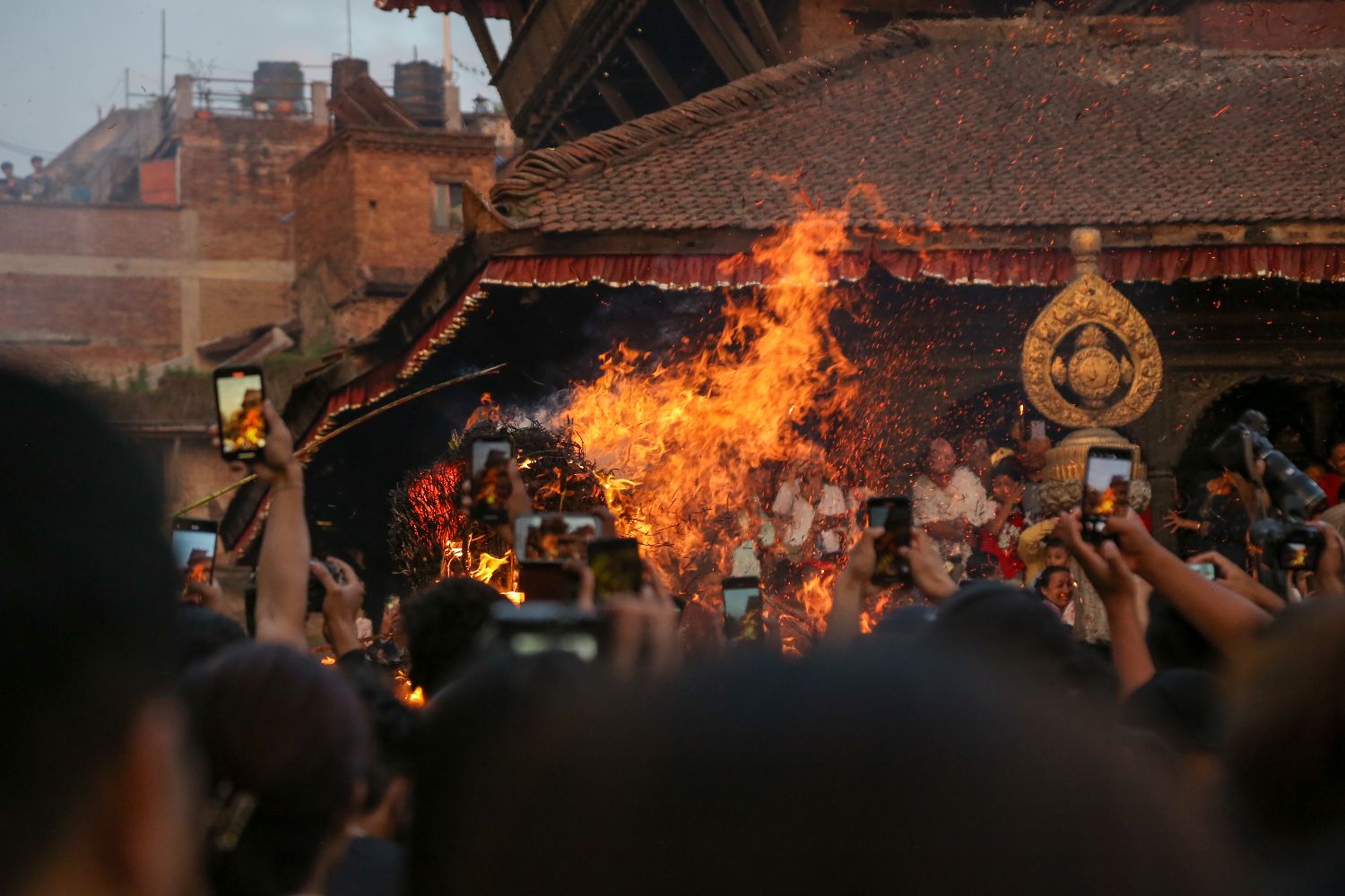 当地时间7月23日,在尼泊尔加德满都谷地巴克塔普尔市,尼瓦尔族民众迎来一年一度的“焚魔节”。