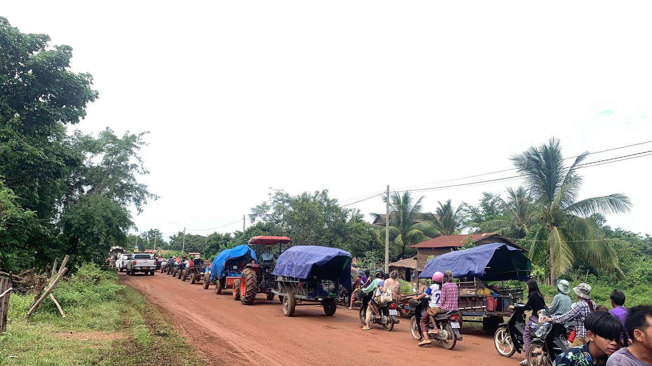 7月24日拍摄的柬埔寨奥多棉吉省边境地区正在撤离的民众。
