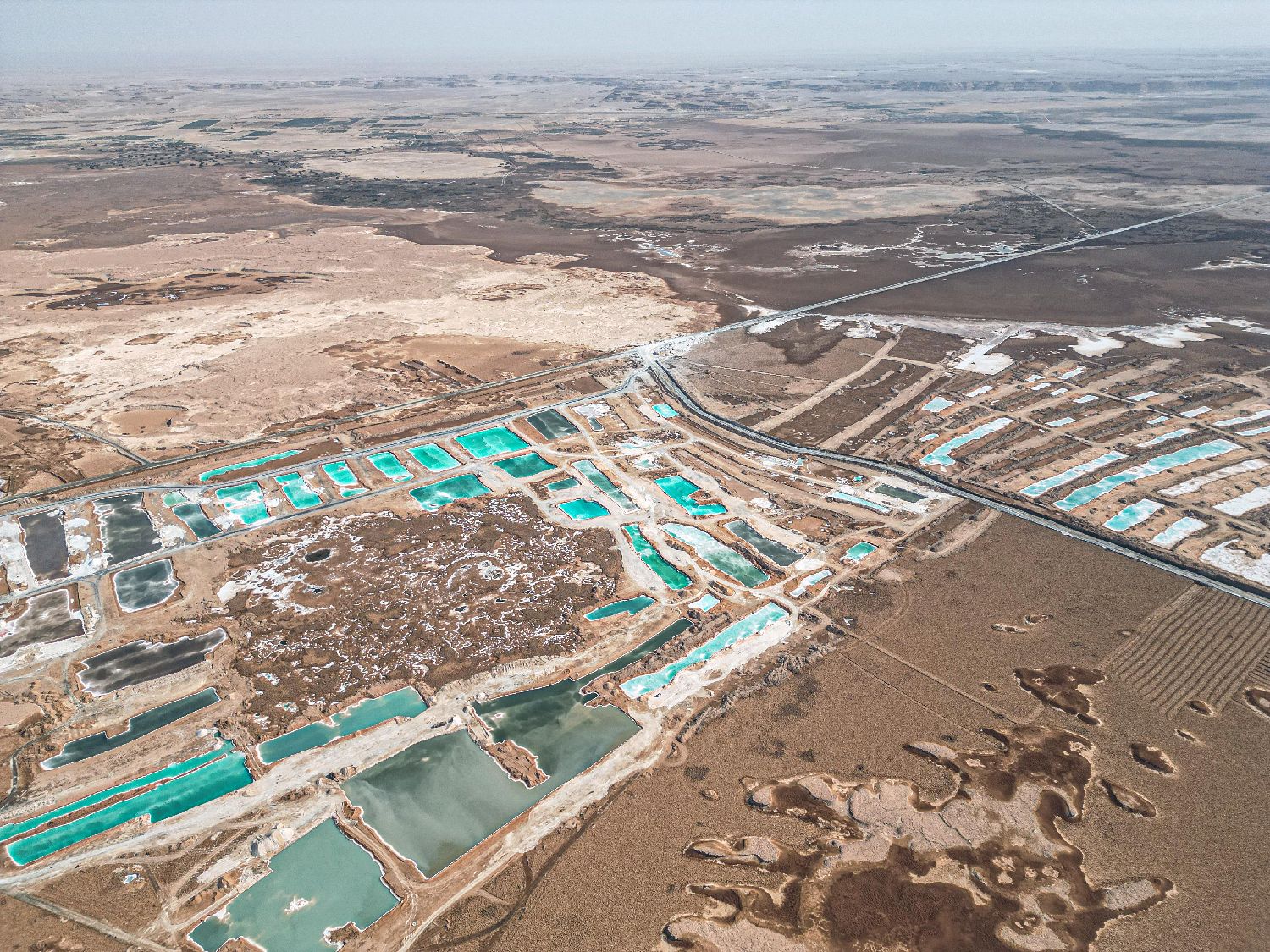 7月28日在埃及锡瓦绿洲拍摄的盐湖(无人机照片)。