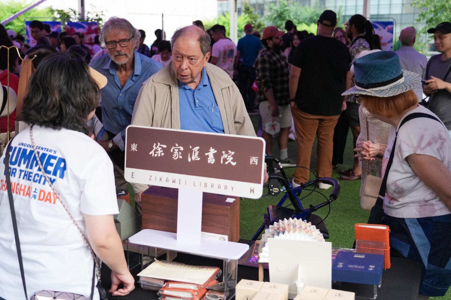 7月26日,人们在美国纽约林肯艺术中心“上海日”集市上购买文创产品。