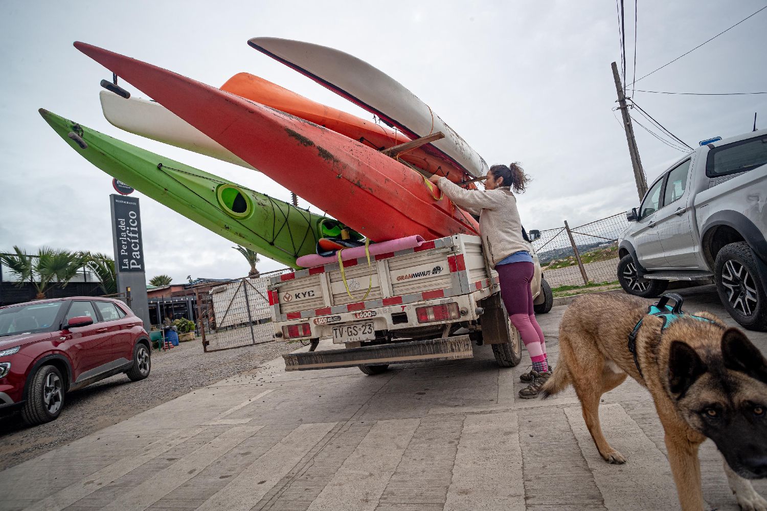 7月30日,在智利瓦尔帕莱索大区康孔市,民众准备撤离危险地带。(图片来源:本文图片均据新华社)