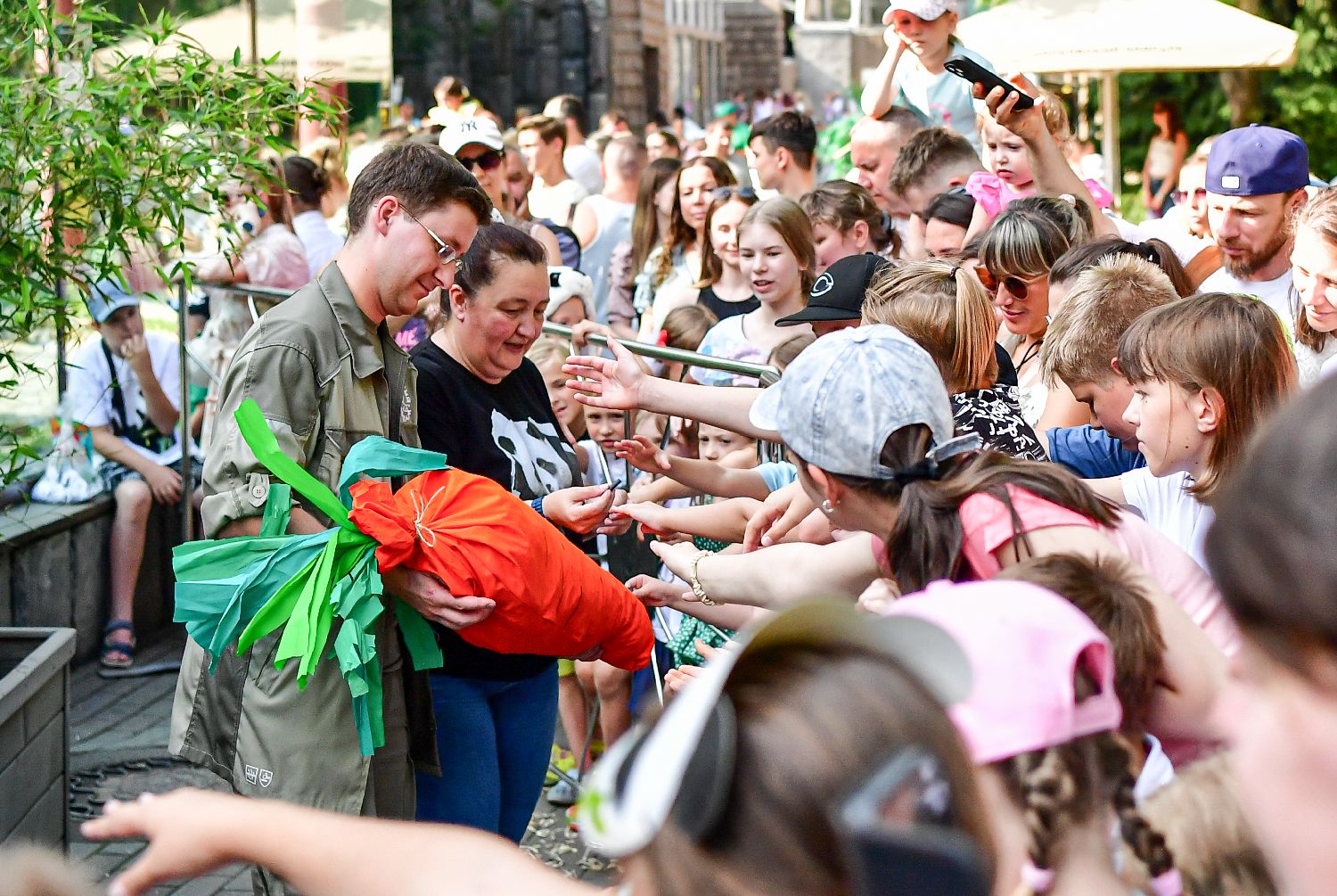 7月31日,在俄罗斯莫斯科动物园,工作人员和游客为大熊猫“如意”制作生日礼物。当日,莫斯科动物园举行活动,为旅俄大熊猫“如意”庆祝9岁生日。(图片来源:本文图片均自新华社)