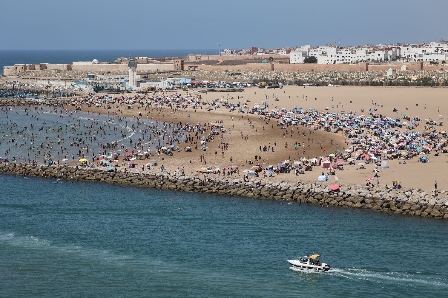 摩洛哥拉巴特民众在海滩上纳凉