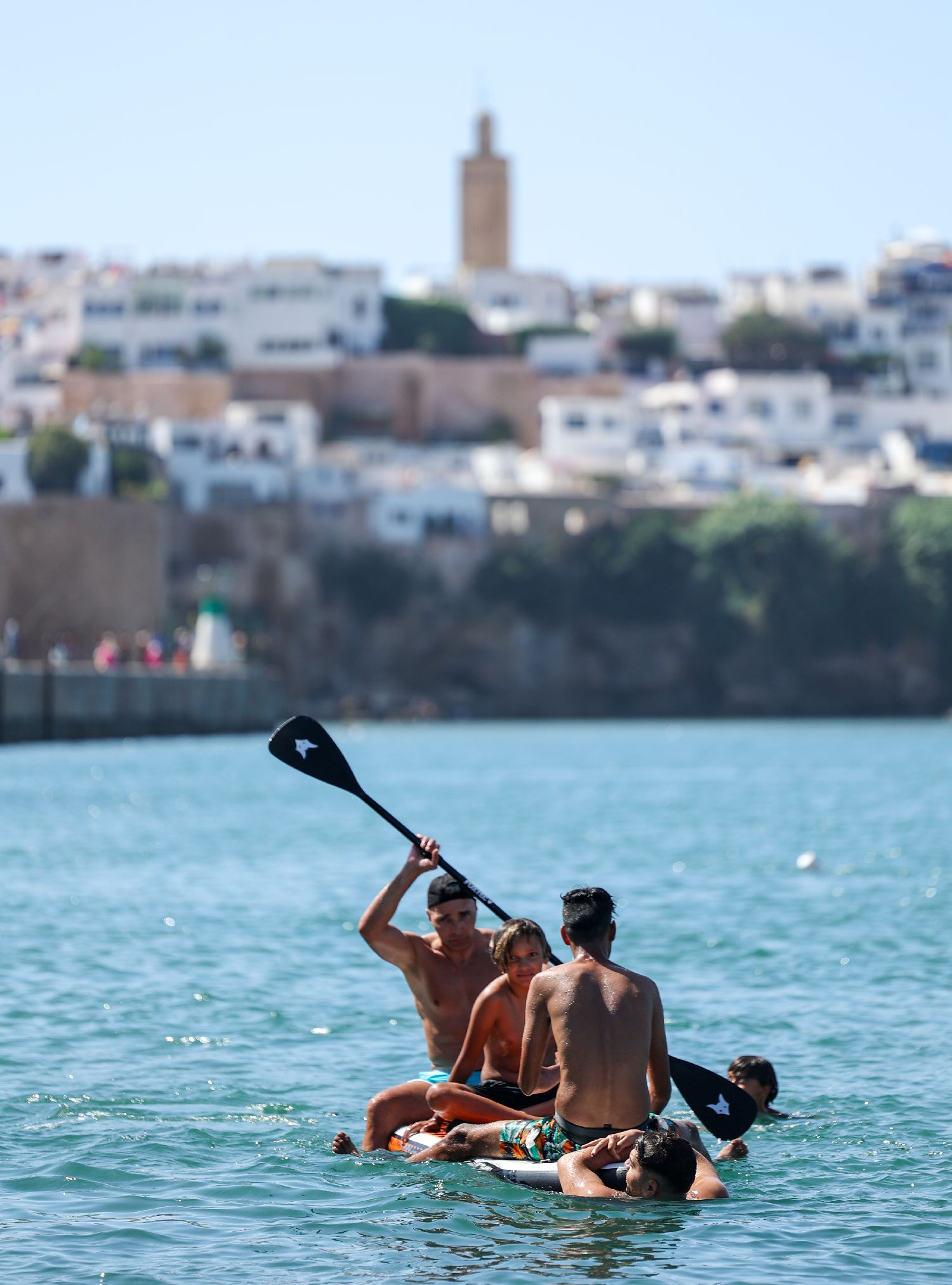 7月30日,在摩洛哥首都拉巴特,民众在布赖格赖格河上纳凉。