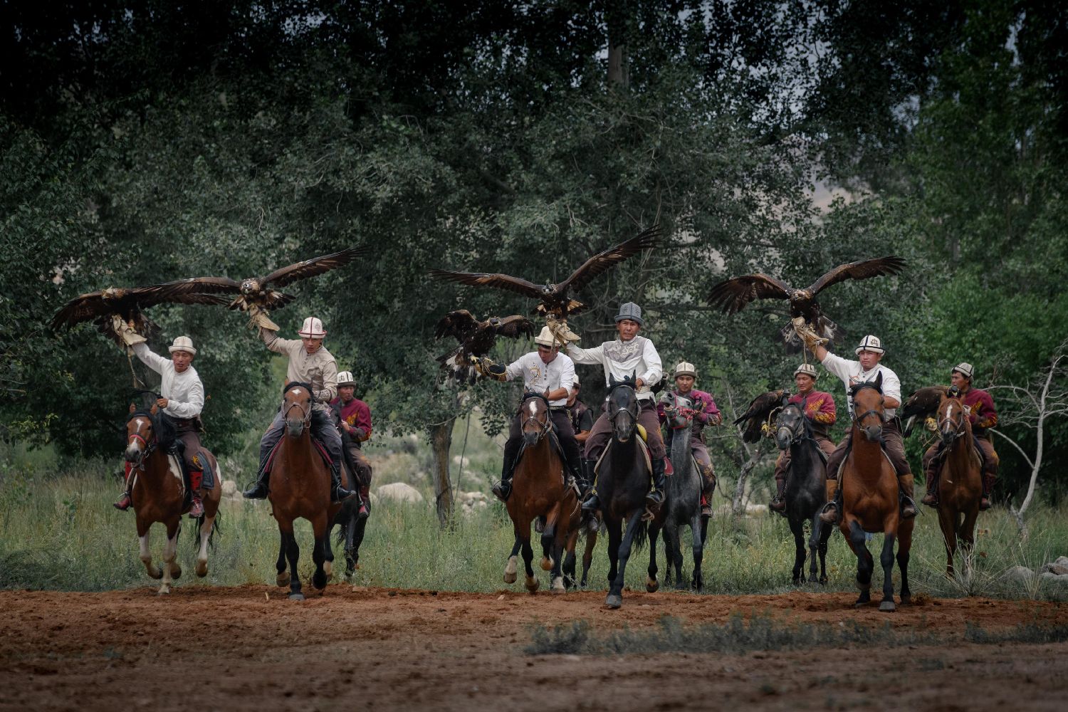 8月2日, 一场民俗艺术节在吉尔吉斯斯坦伊塞克湖南岸举行。此次艺术节的形式包括民俗展示和各种狩猎表演。