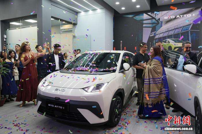比亚迪在车展现场举行电动汽车Atto 1尼泊尔首发仪式。