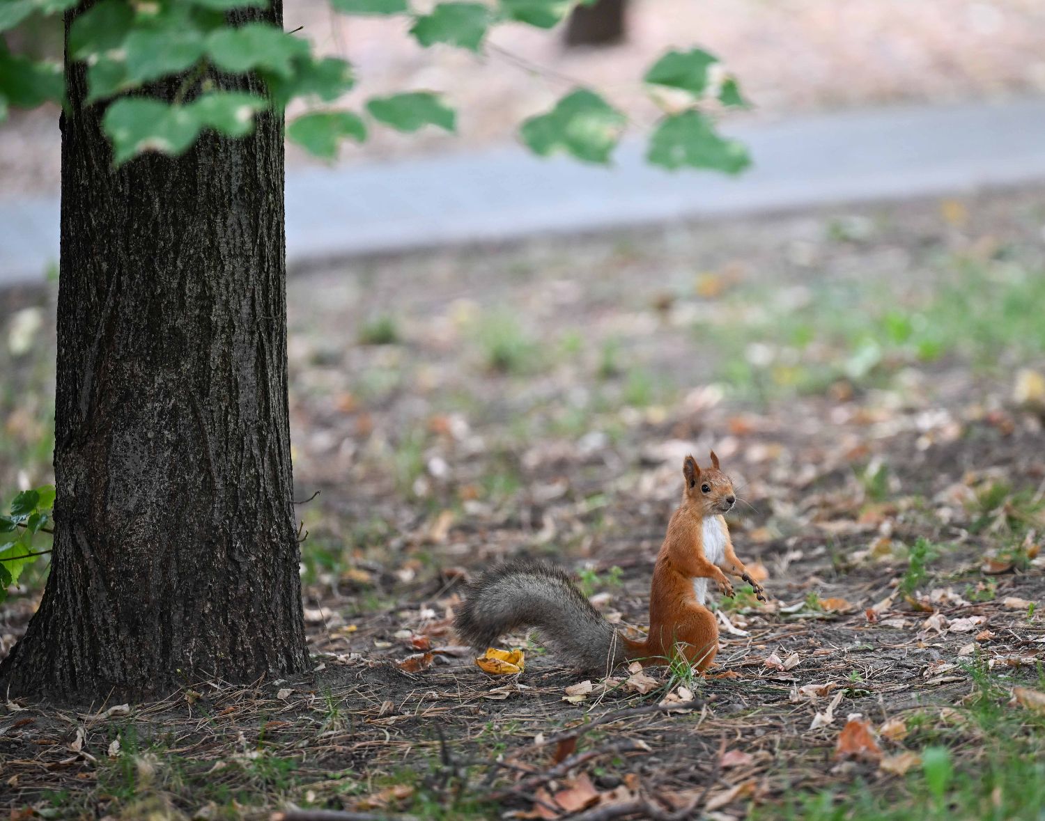 8月3日在哈萨克斯坦阿拉木图一个公园拍摄的松鼠。