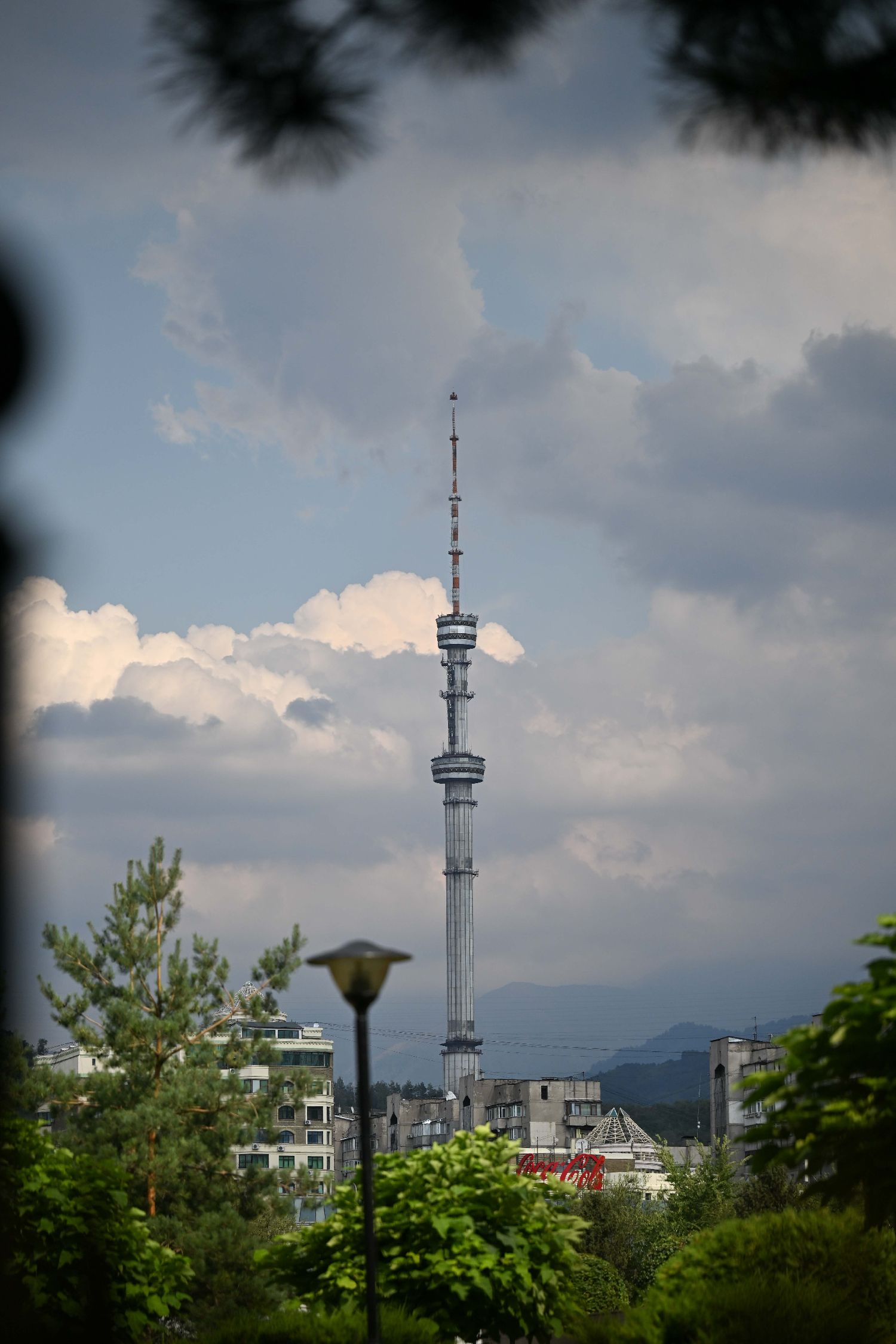 8月3日在哈萨克斯坦阿拉木图拍摄的科克托别电视塔。