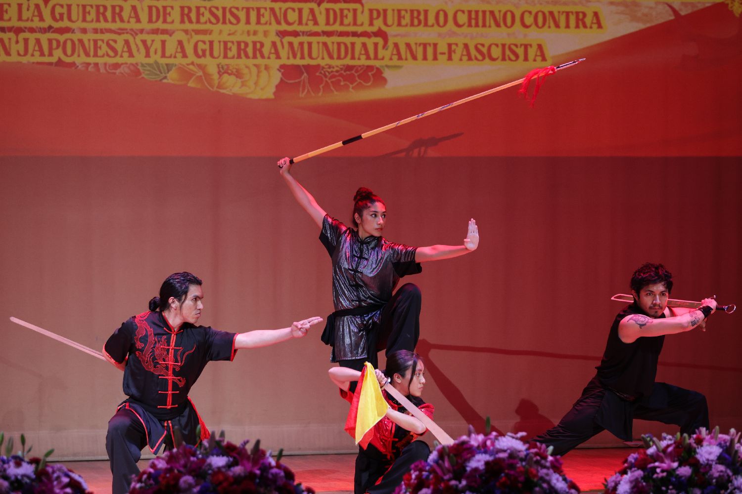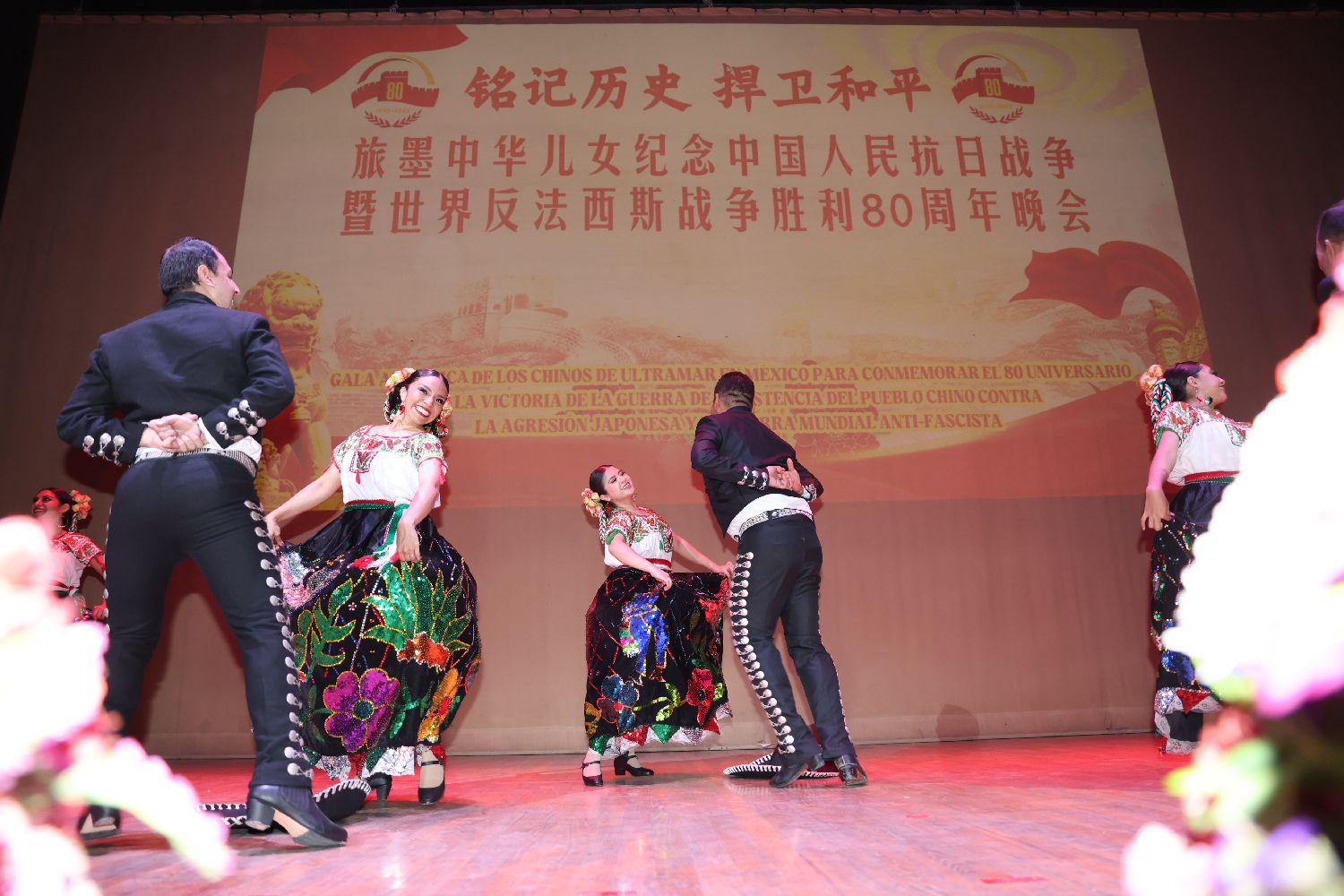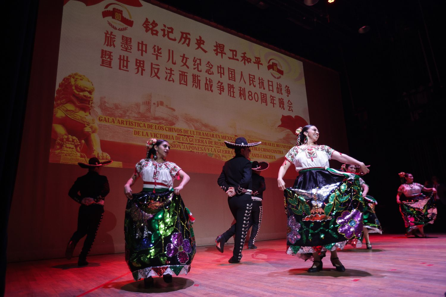 8月17日,在墨西哥首都墨西哥城,演员在旅墨中华儿女纪念中国人民抗日战争暨世界反法西斯战争胜利80周年晚会上表演。
