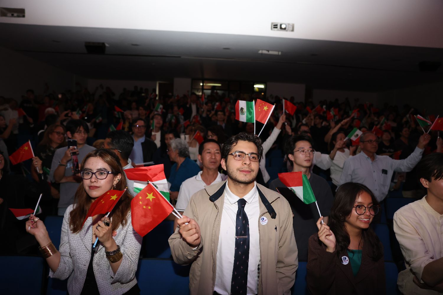 8月17日,在墨西哥首都墨西哥城,观众在旅墨中华儿女纪念中国人民抗日战争暨世界反法西斯战争胜利80周年晚会上观看演出。