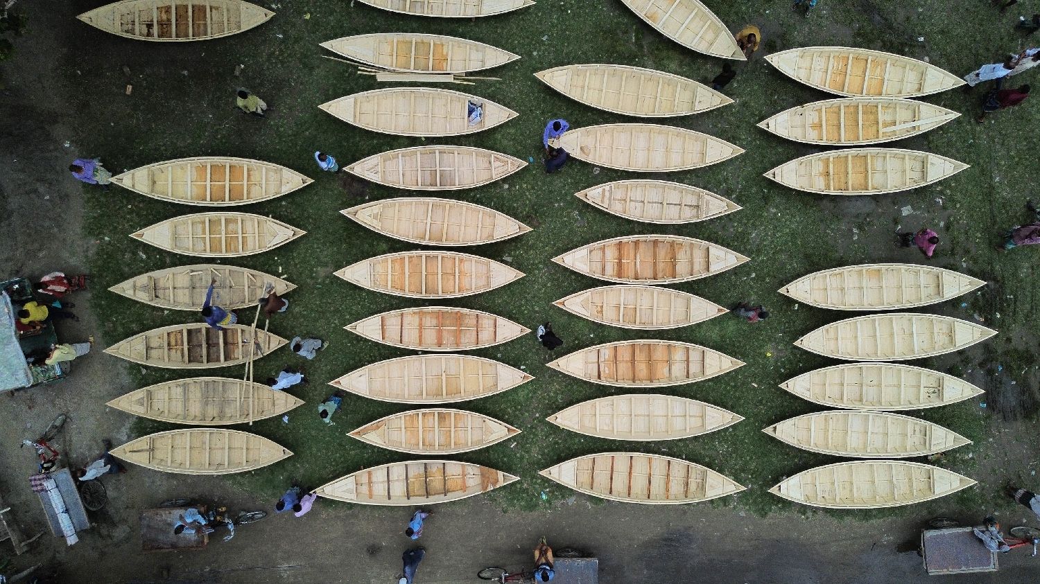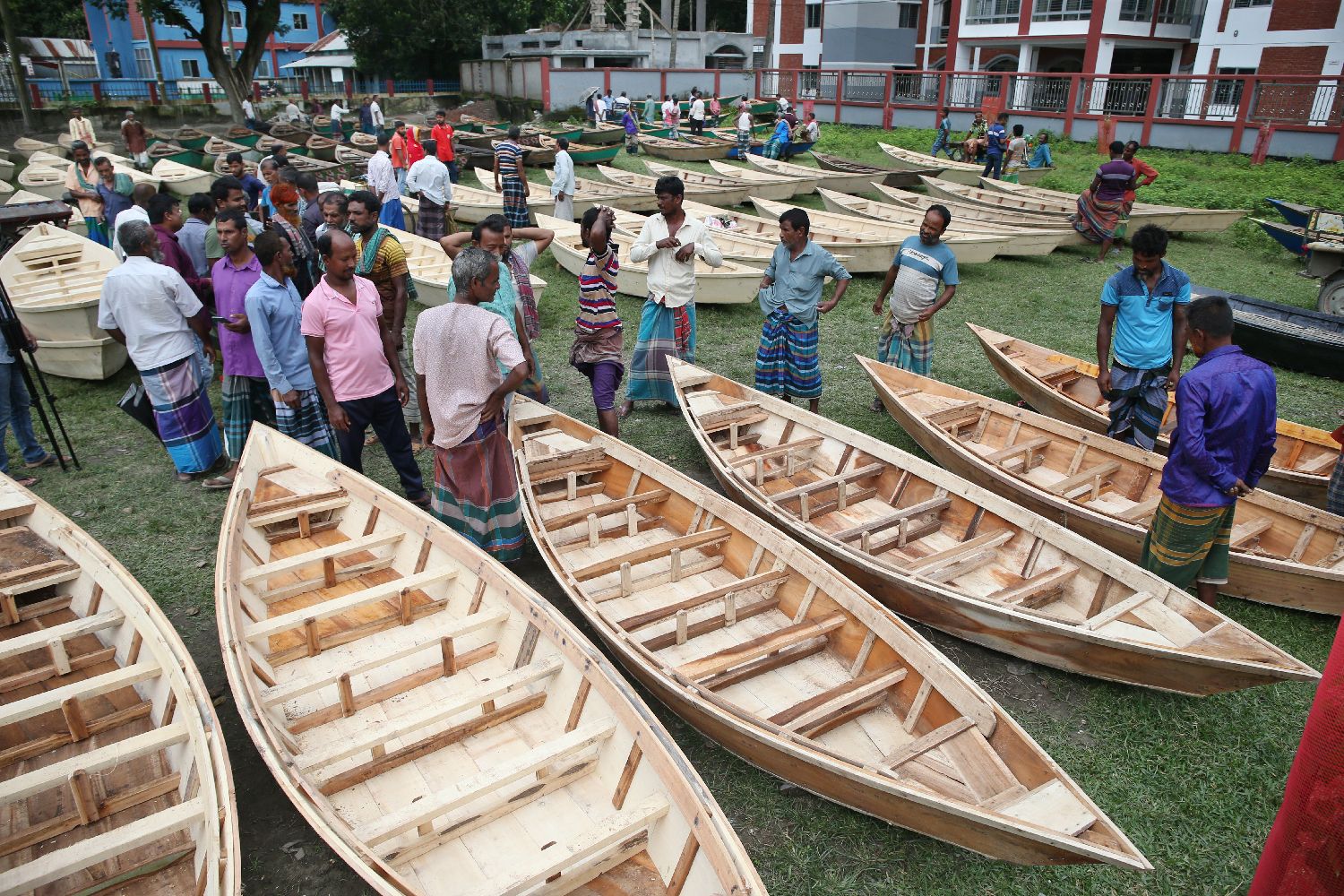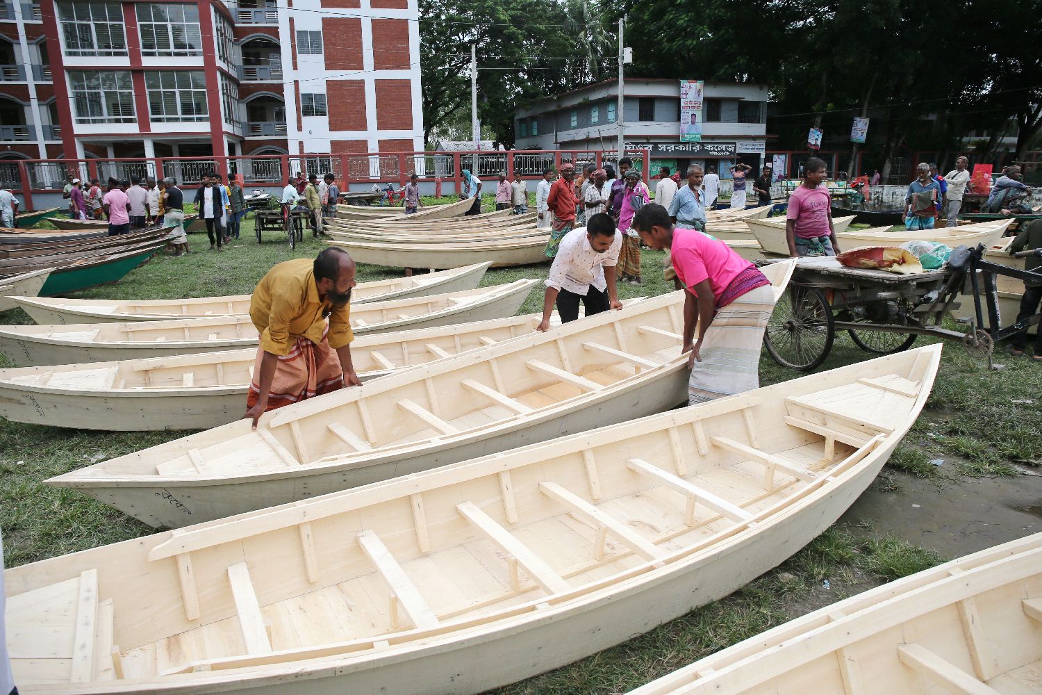当前正值季风雨季,船只需求更加旺盛。图为8月20日,各地的买家在孟加拉国马尼格甘杰的传统手工木船市场选购木船。