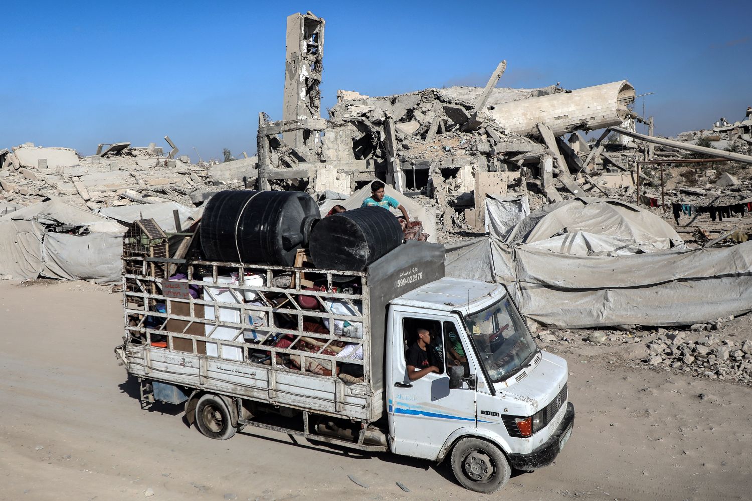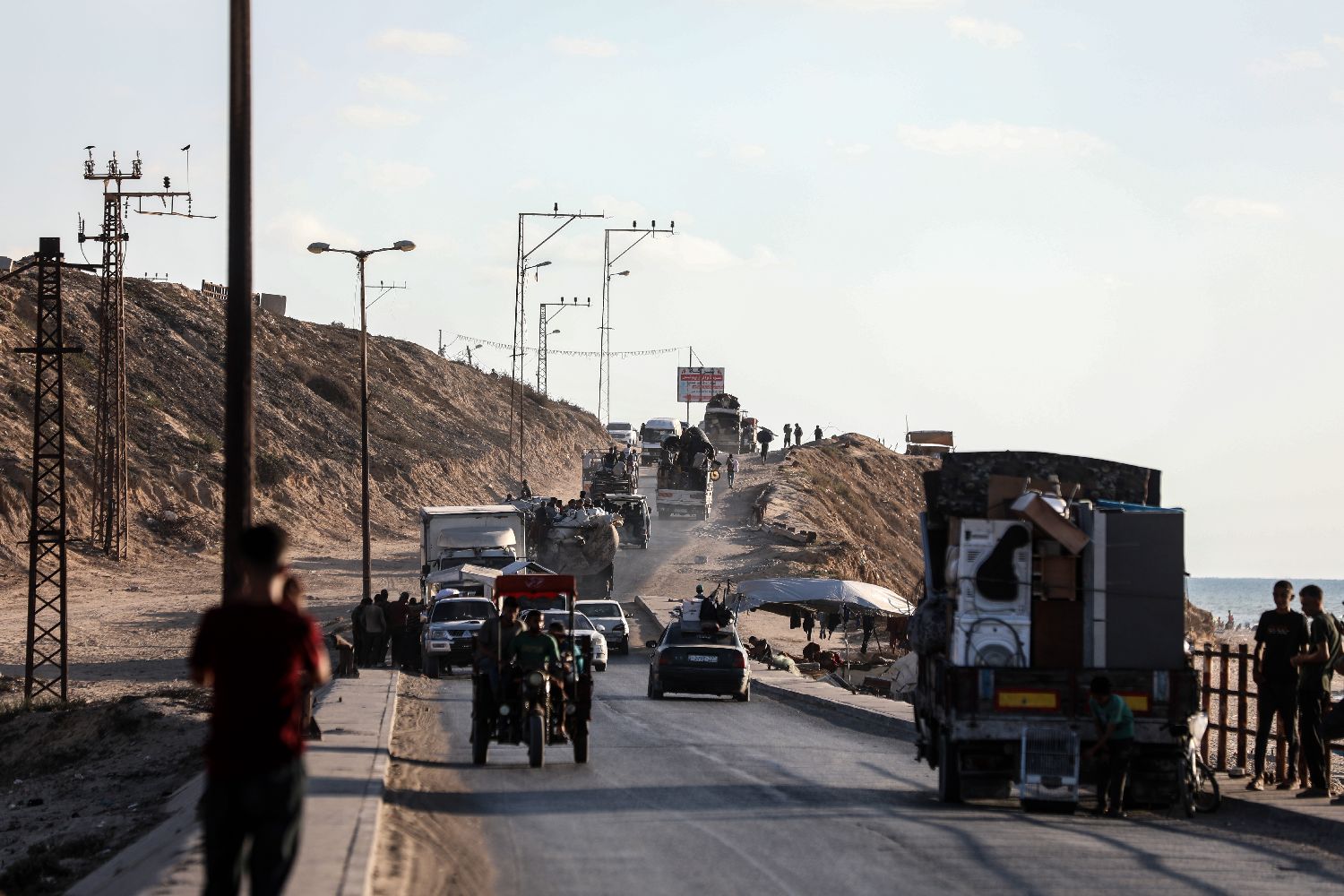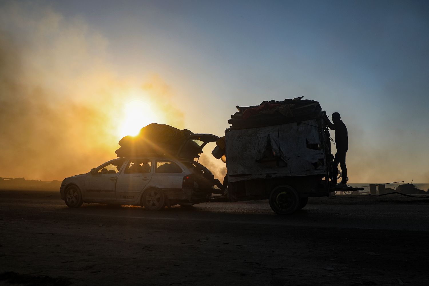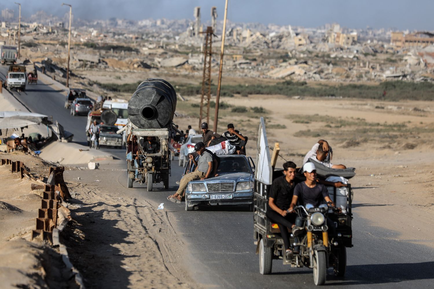 8月31日,在加沙地带中部地区,从加沙地带北部地区撤离的巴勒斯坦人向南部迁移。