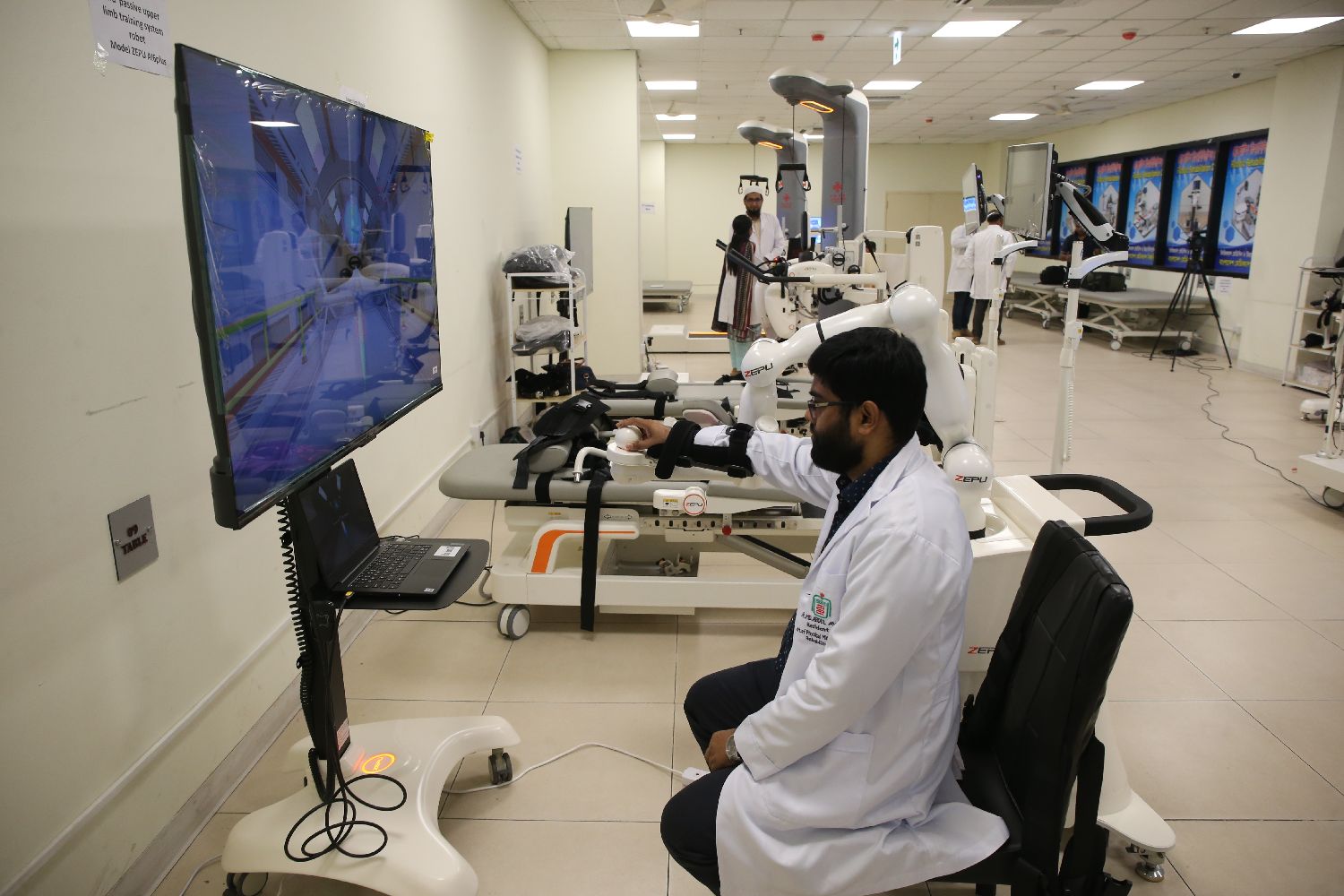 8月31日,医生在孟加拉国首都达卡的机器人康复中心调试设备。
