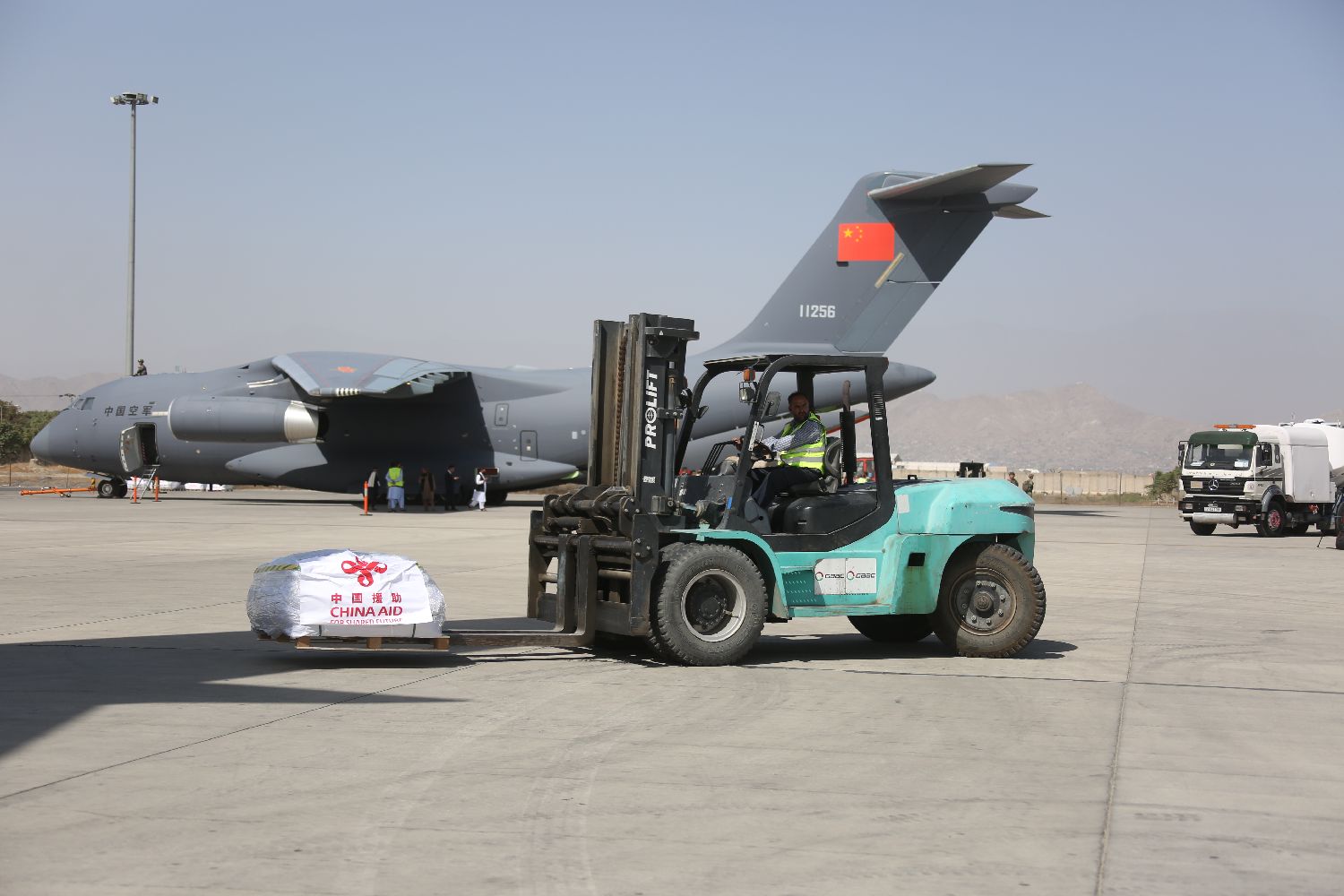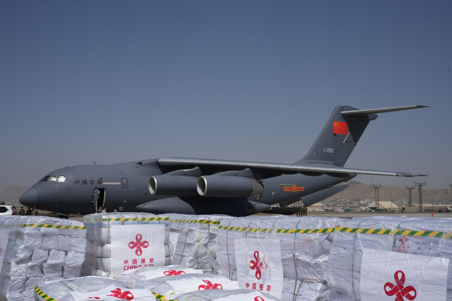 中国政府首批援助阿富汗紧急人道主义救灾物资9月7日运抵阿首都喀布尔。首批援助包括帐篷、毛毯等灾区急需物资,由中国空军两架运-20飞机承运。