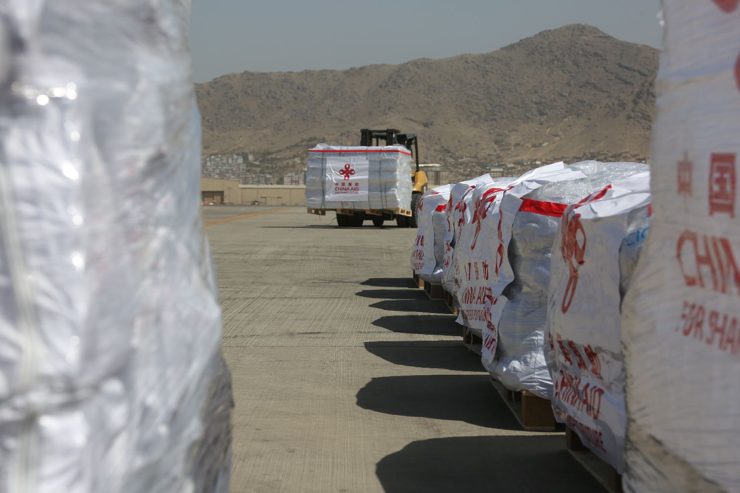 穆斯利姆表示,地震发生后,中国政府首批紧急物资援助很快运抵,这是对阿灾区人民的巨大支持和帮助。阿领导人感谢中方的诚挚慰问和宝贵支持,阿方将永远铭记中国人民对阿富汗人民的友好情谊。图为中国援助阿富汗的救灾物资堆放在停机坪上。