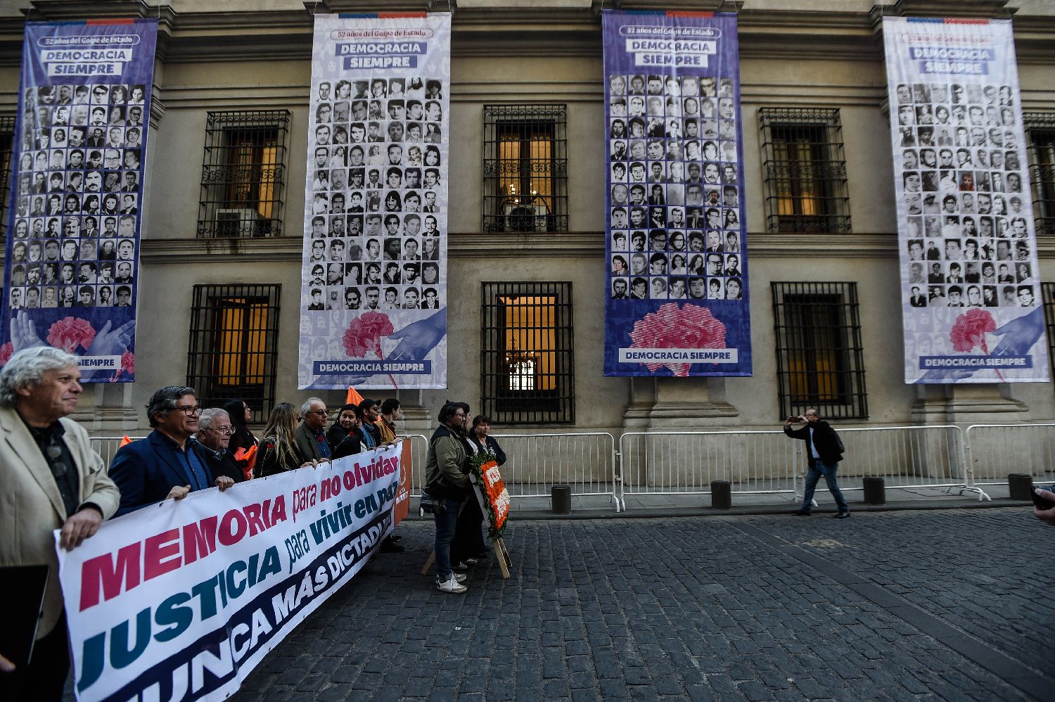 9月11日,智利民众在首都圣地亚哥的总统府莫内达宫附近举行活动,悼念前总统阿连德和军政府统治时期的受害者。