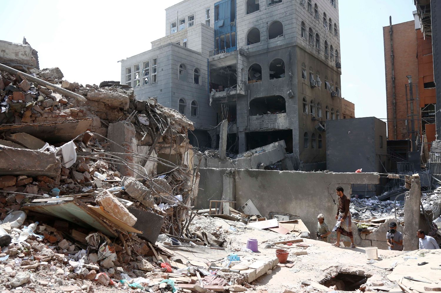 9月13日在也门首都萨那拍摄的遭以军空袭损毁的建筑。