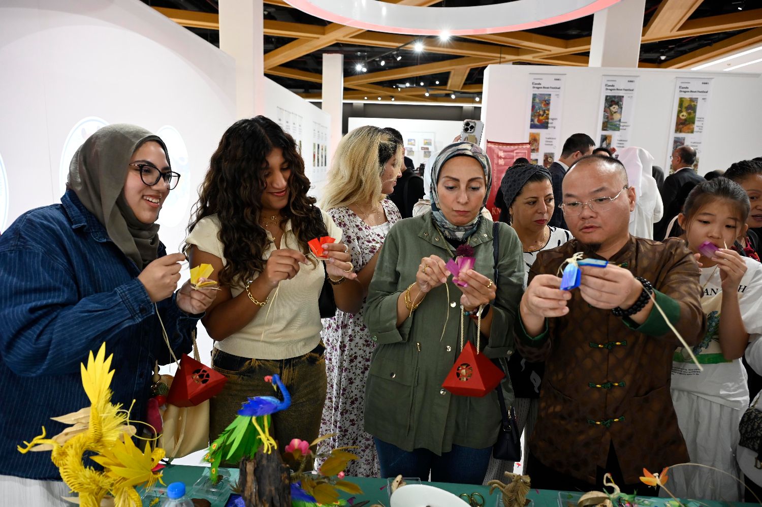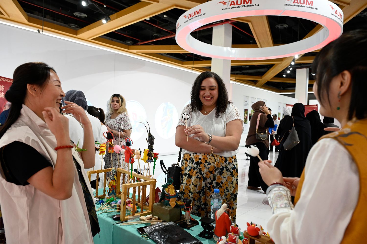 9月17日,在科威特艾哈迈迪省,人们体验中国非遗文化。
