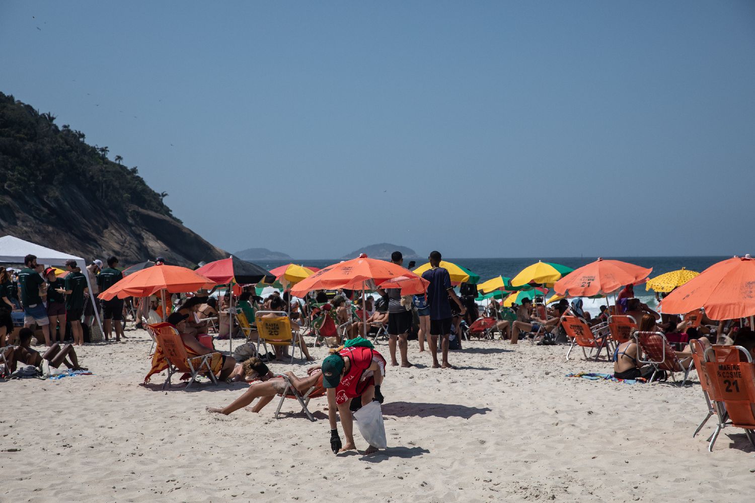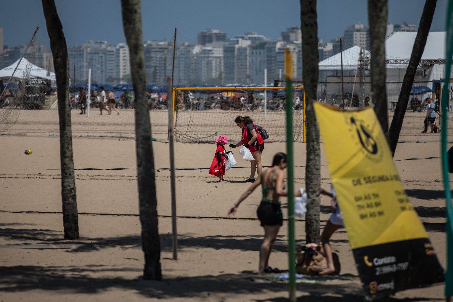 9月20日,志愿者在巴西里约热内卢科帕卡巴纳海滩上捡拾垃圾。