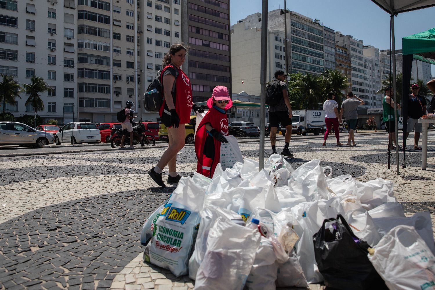 9月20日,在巴西里约热内卢,志愿者将捡拾的垃圾集中放置。
