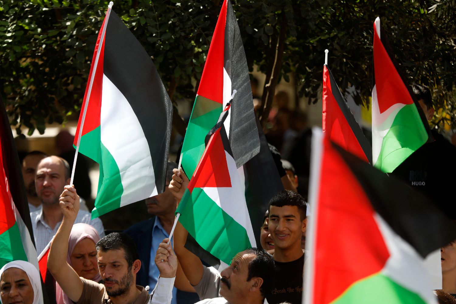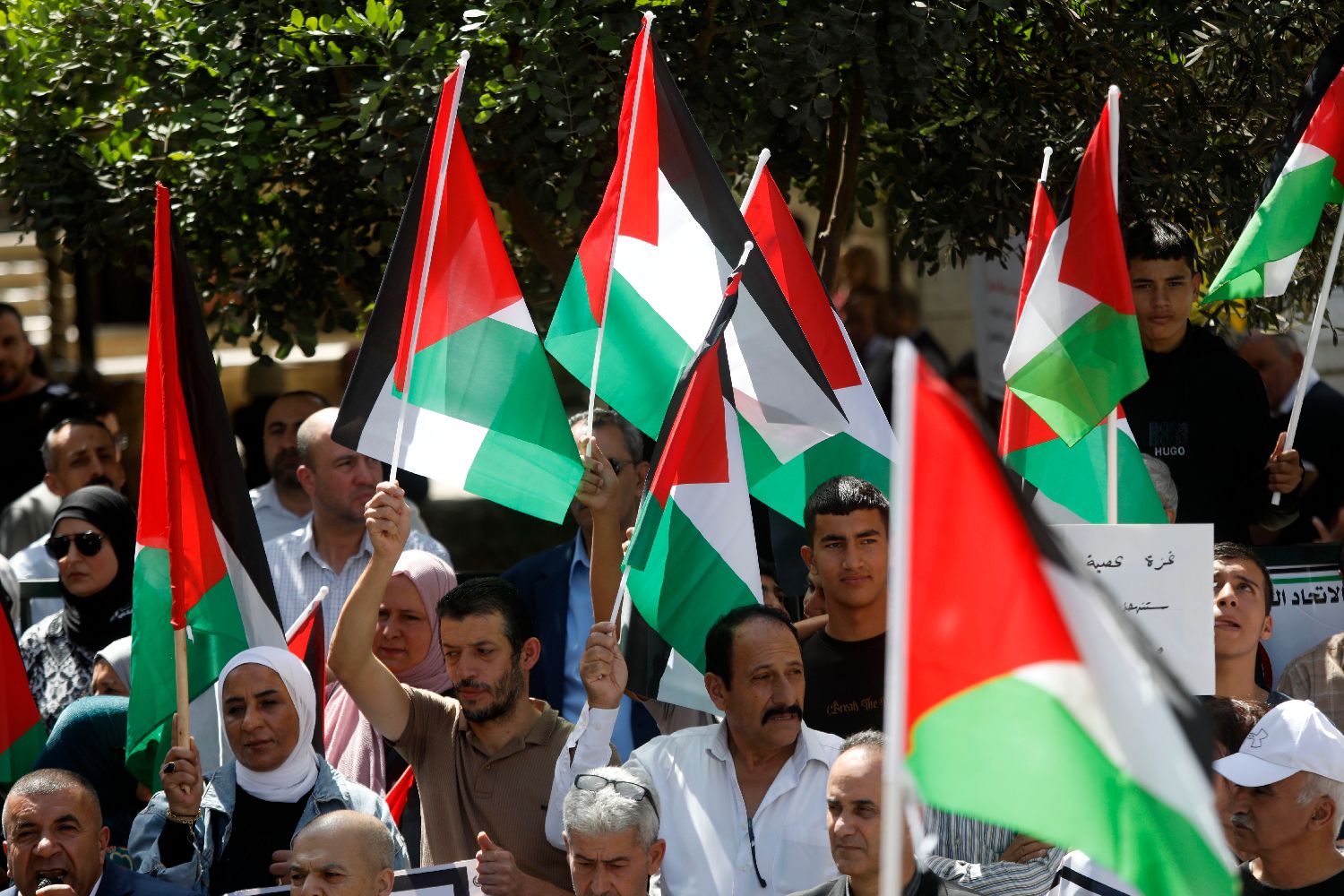 9月23日,巴勒斯坦约旦河西岸多个城市举行集会和游行活动,庆祝多国承认巴勒斯坦国,同时继续声援加沙地带民众。