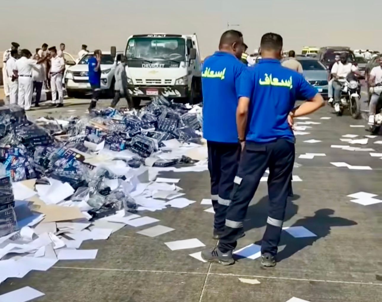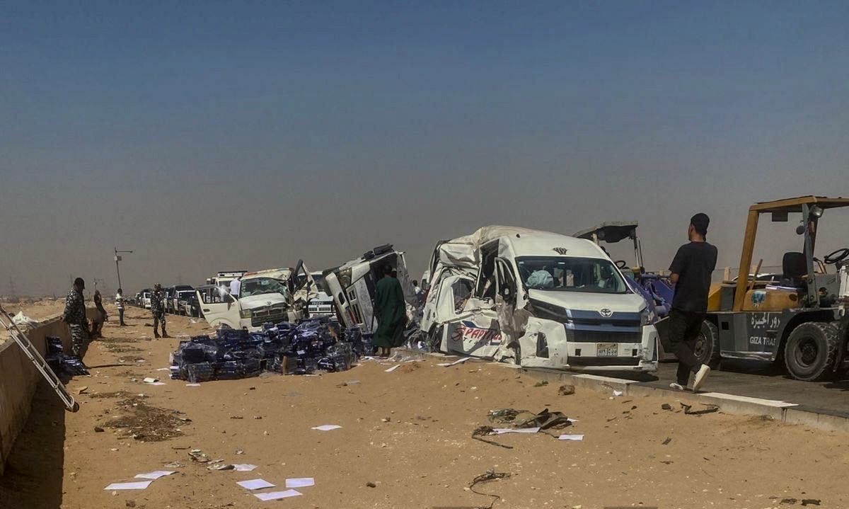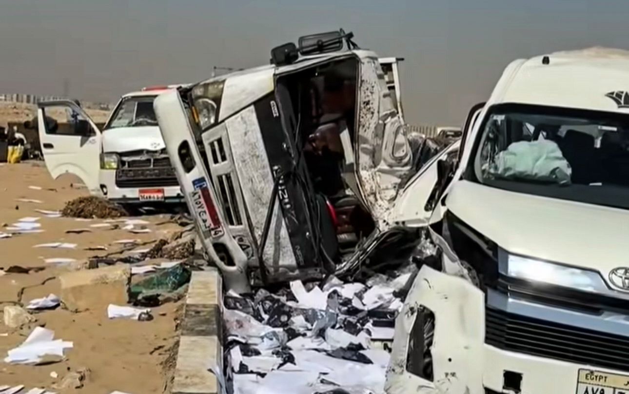 事故发生后,中国驻埃及大使馆工作人员紧急赶赴现场处置,并赴医院看望伤员。图为9月29日在埃及吉萨省拍摄的交通事故现场。(图片来源:新华社)