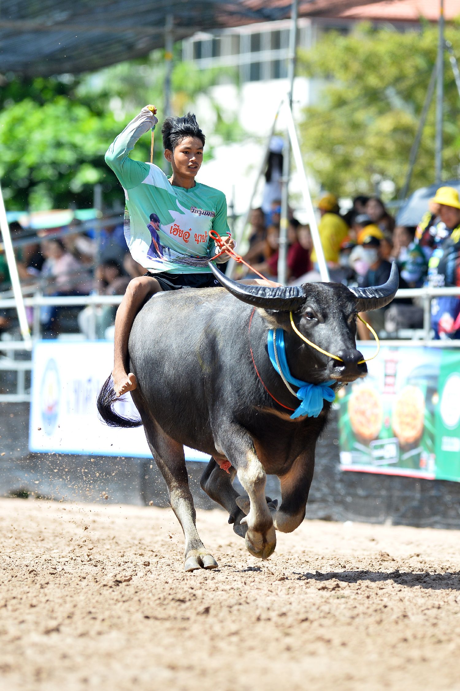 10月6日,泰国春武里府举行一年一度的骑水牛大赛,庆祝水稻收获季节的到来。