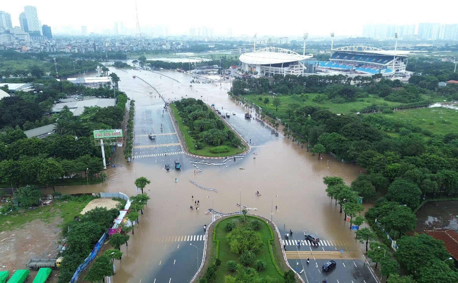 10月7日在越南首都河内拍摄的遭洪水侵袭的道路。(图片来源:本文图片均据新华社)