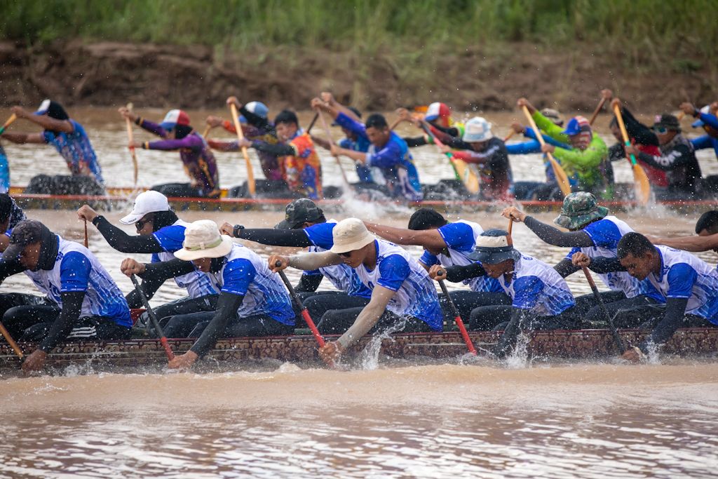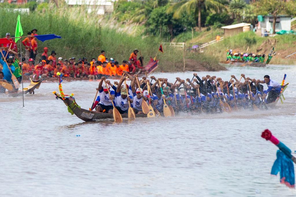10月8日,龙舟竞速活动在老挝万象湄公河上进行。