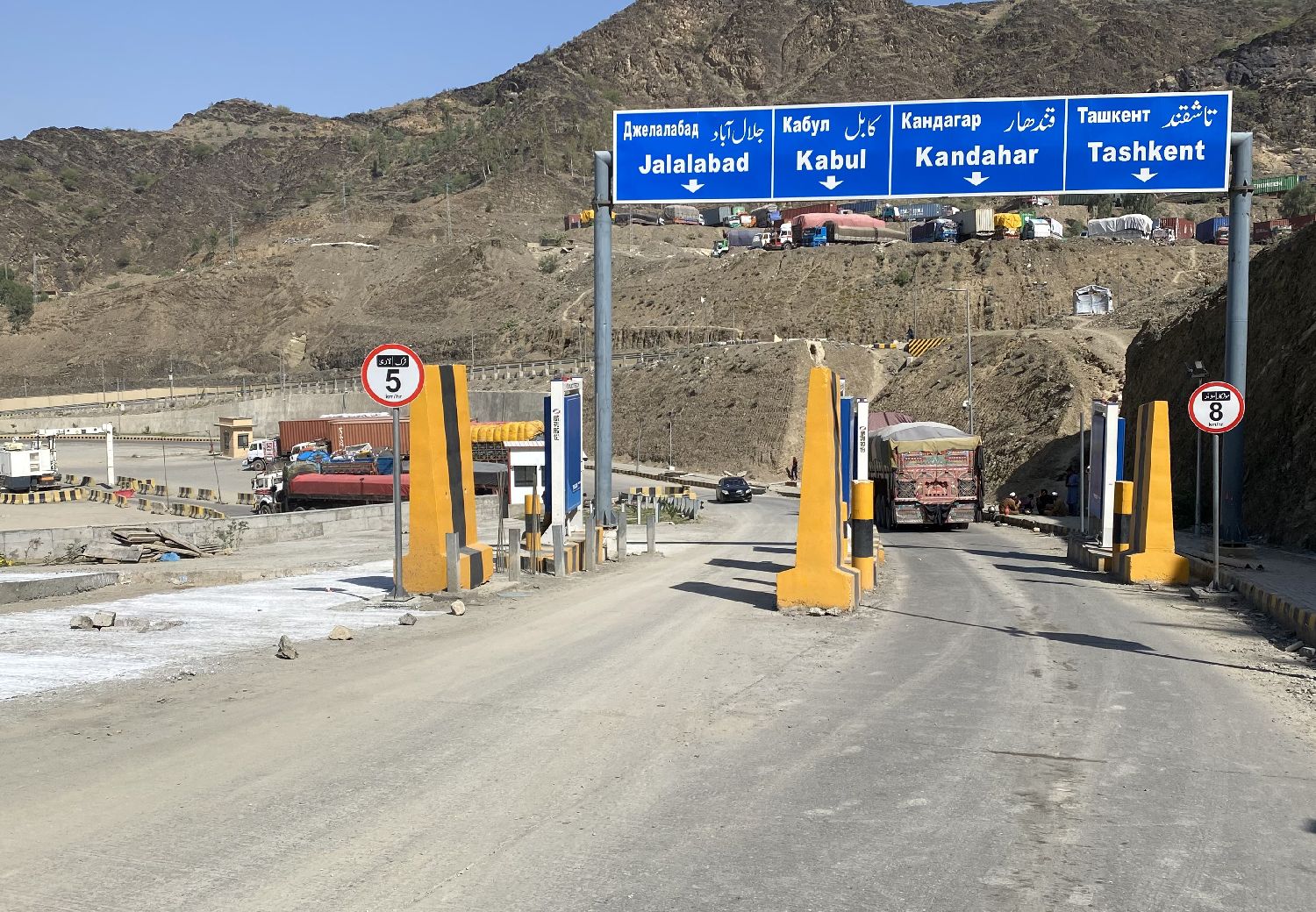 10月13日在巴基斯坦与阿富汗的边境口岸多尔哈姆拍摄的路牌。