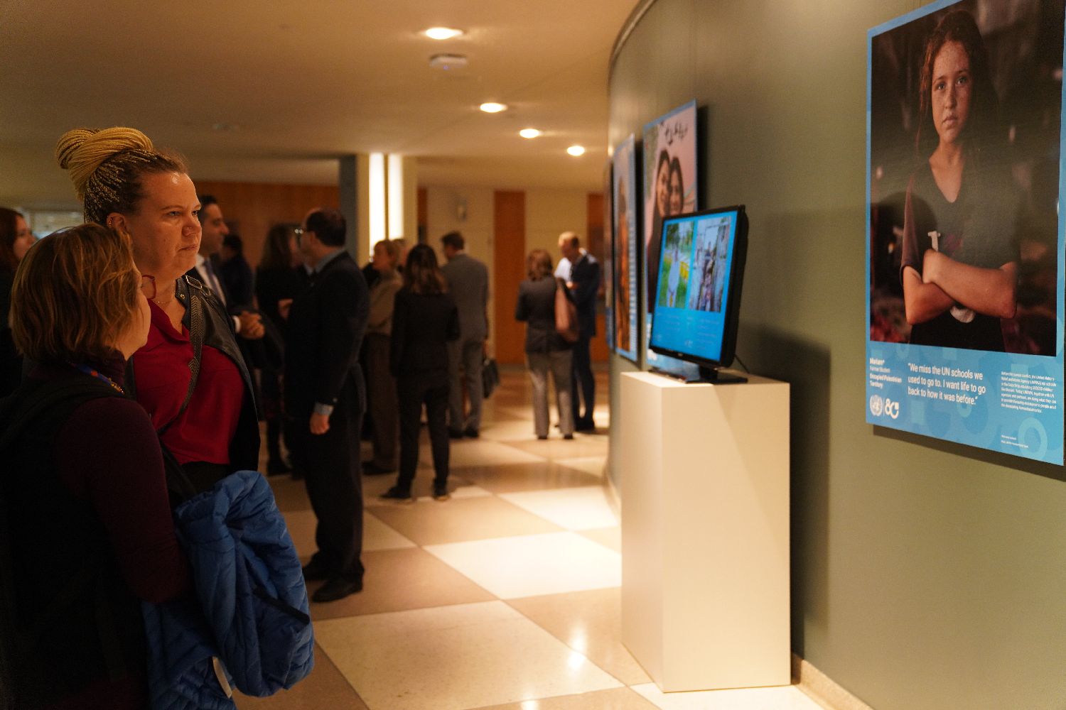 10月20日,在位于纽约的联合国总部,民众参观“共栖生命,共享未来”庆祝联合国成立80周年全球图片展。