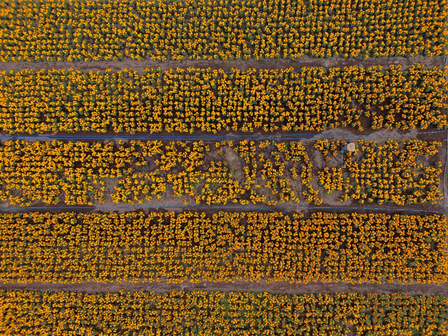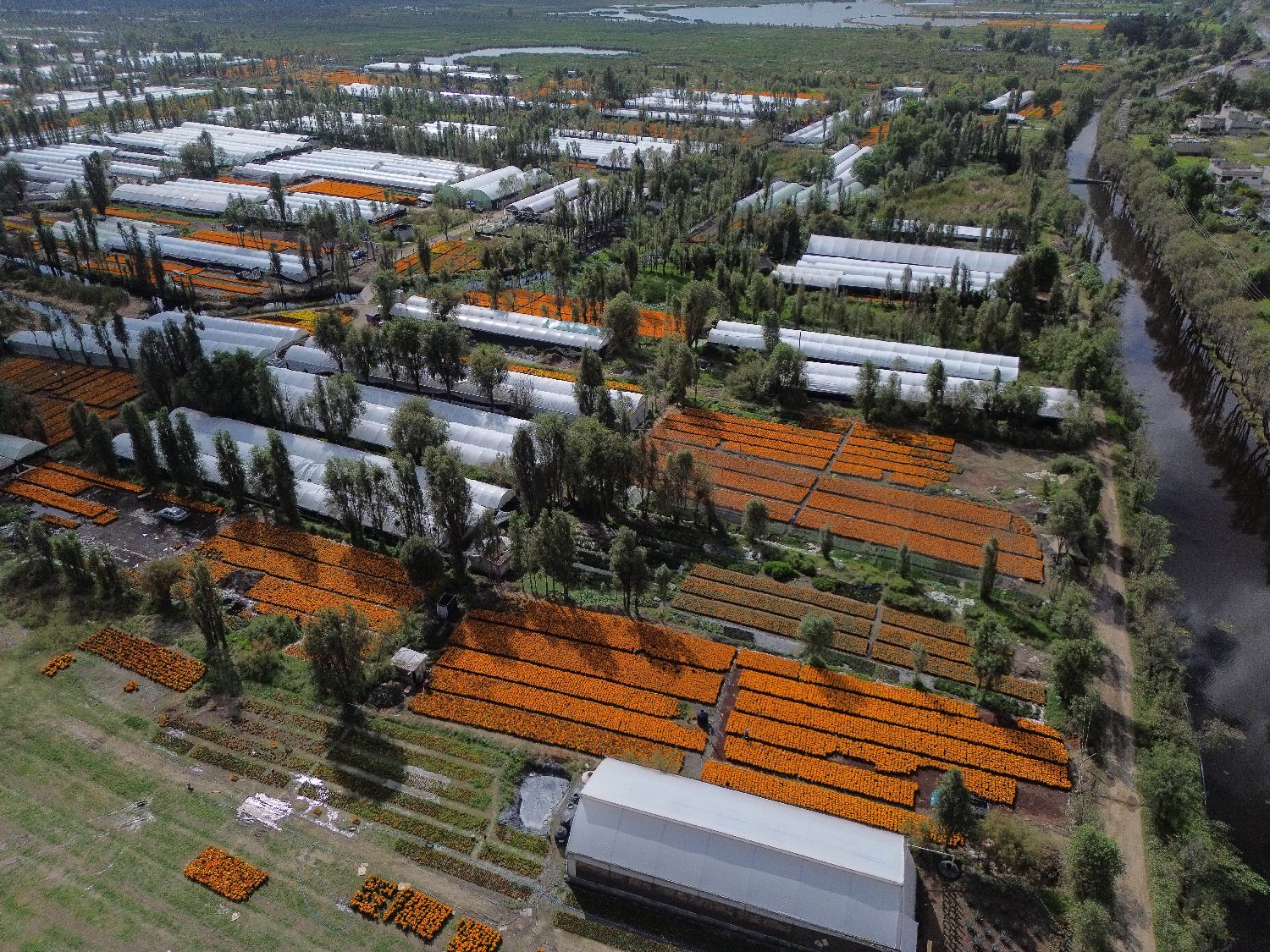10月21日在墨西哥首都墨西哥城拍摄的万寿菊花田。